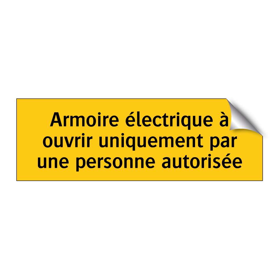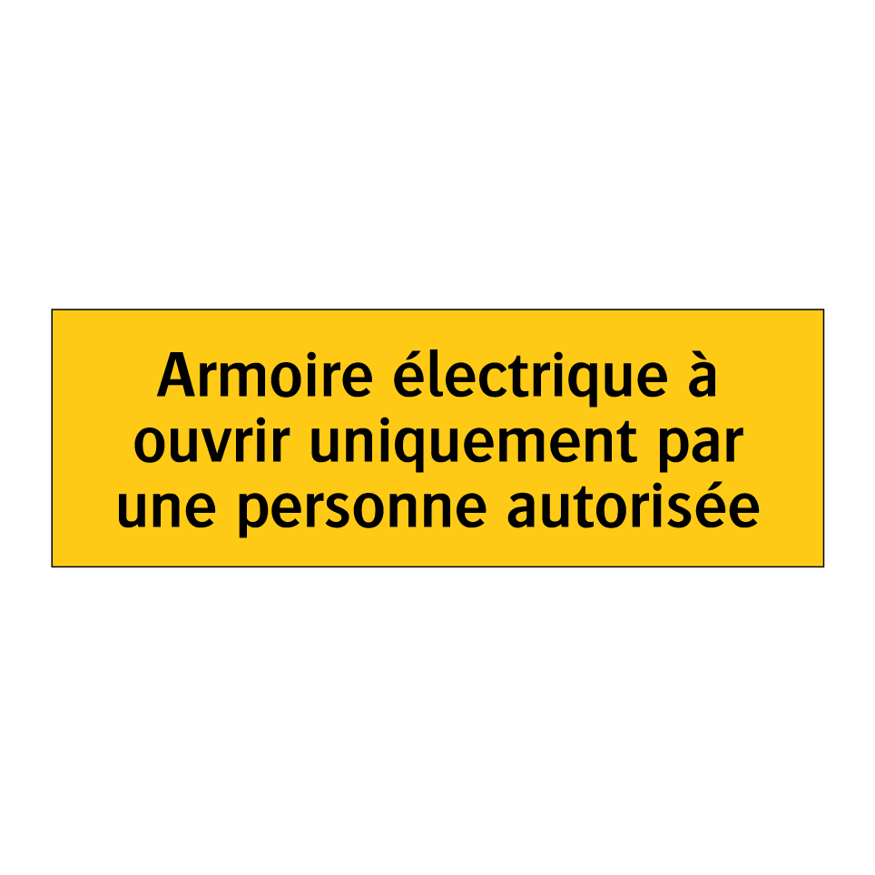 Panneau d'avertissement avec le texte : "Armoire électrique à ouvrir uniquement par une personne autorisée"