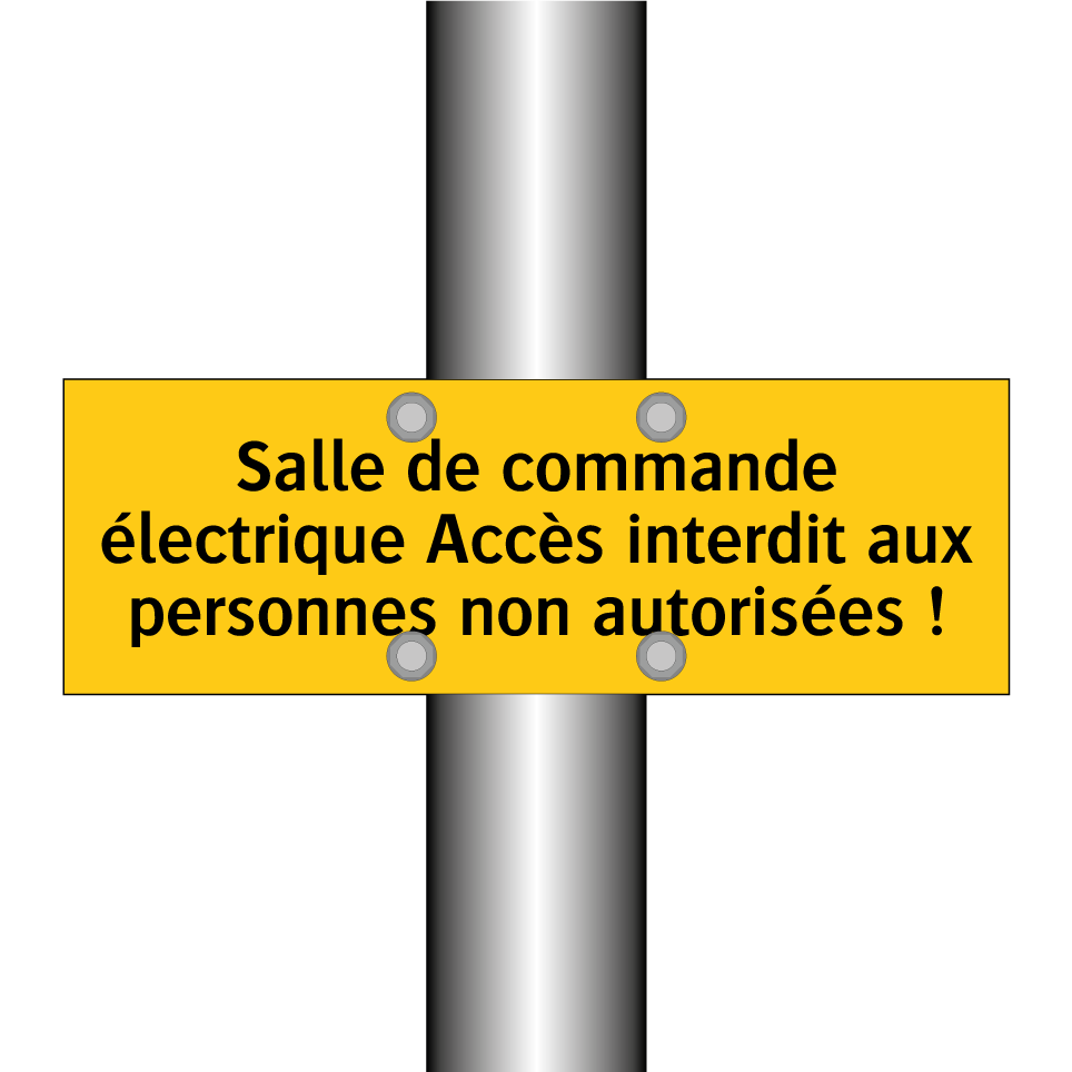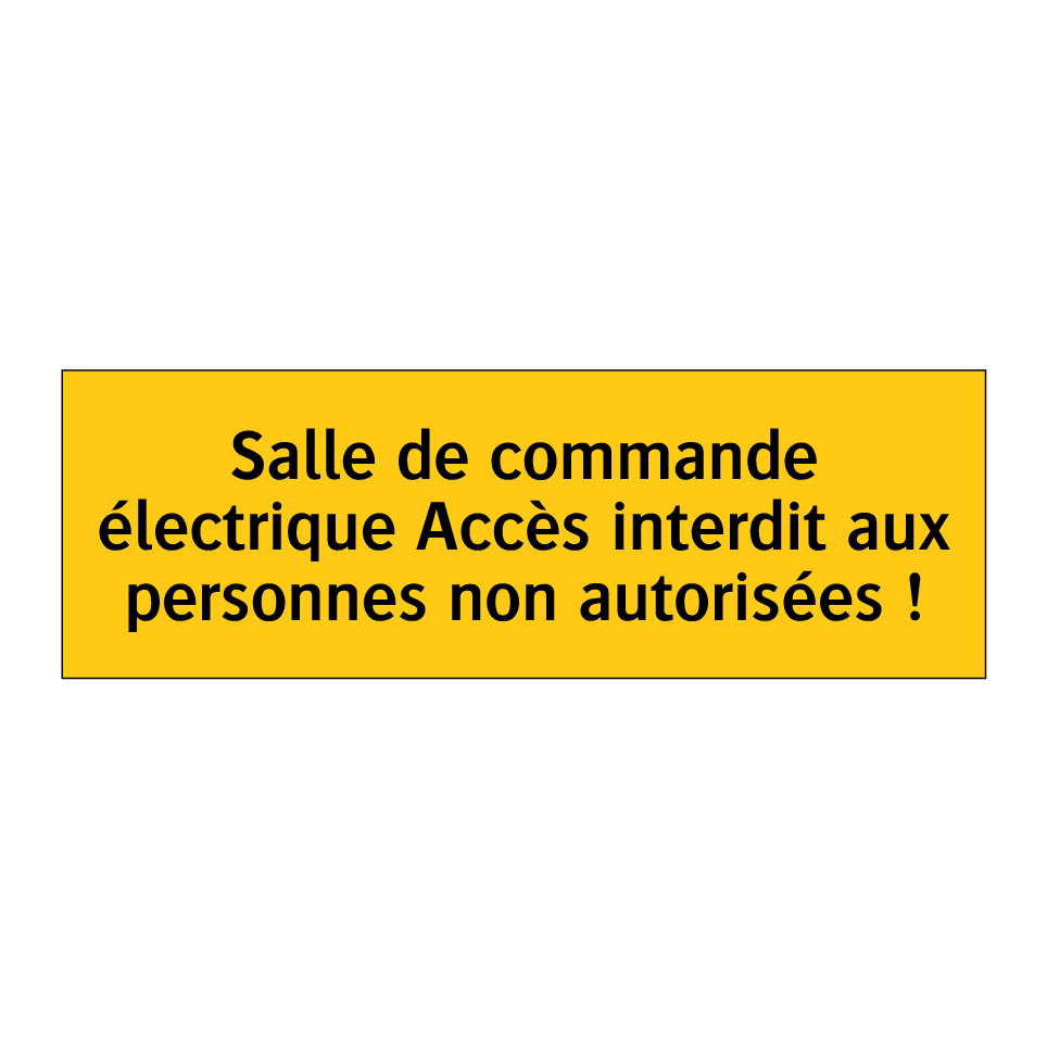 Panneau d'avertissement avec le texte : "Salle de commande électrique Accès interdit aux personnes non autorisées !"
