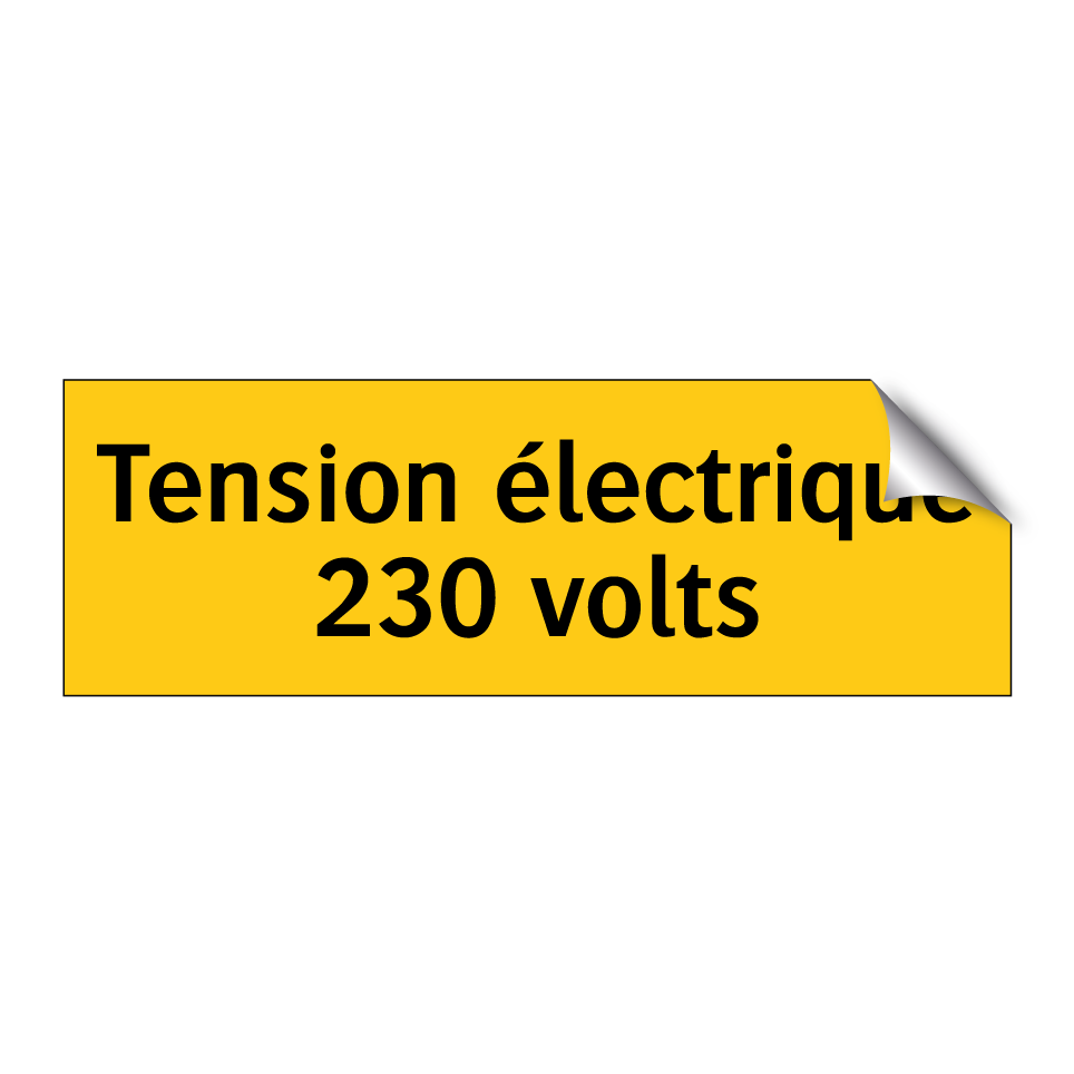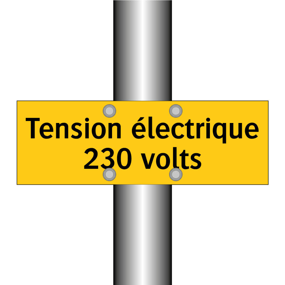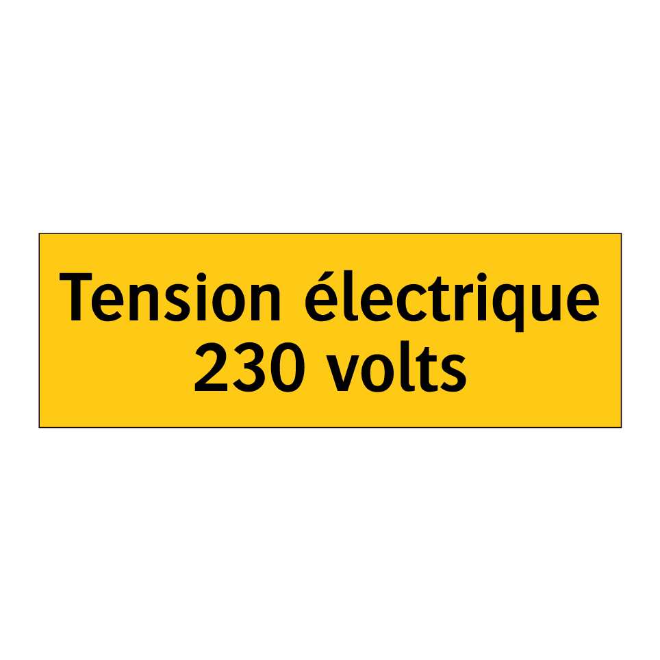 Panneau d'avertissement avec le texte : "Tension électrique 230 volts"