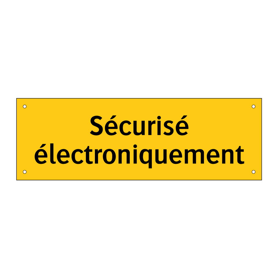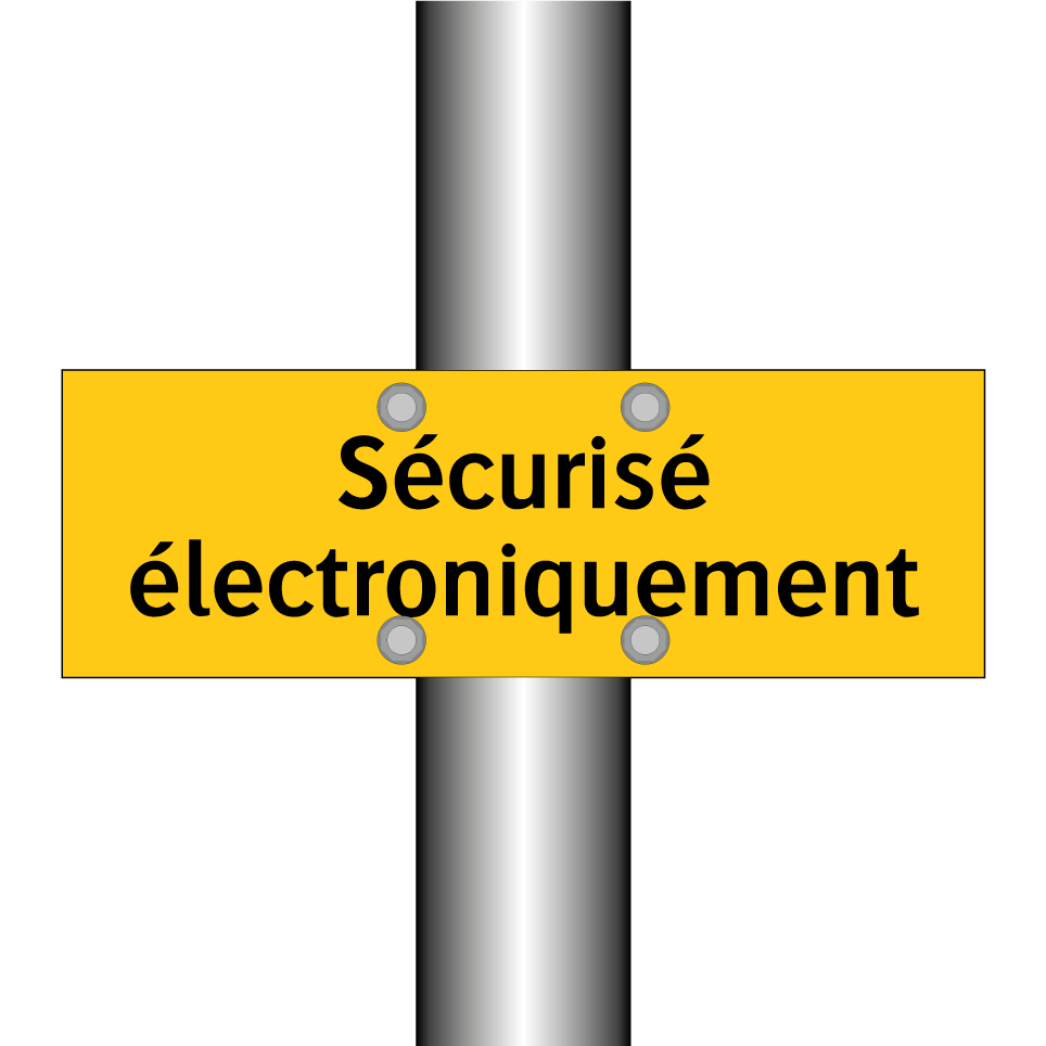 Panneau d'avertissement avec le texte : "Sécurisé électroniquement"