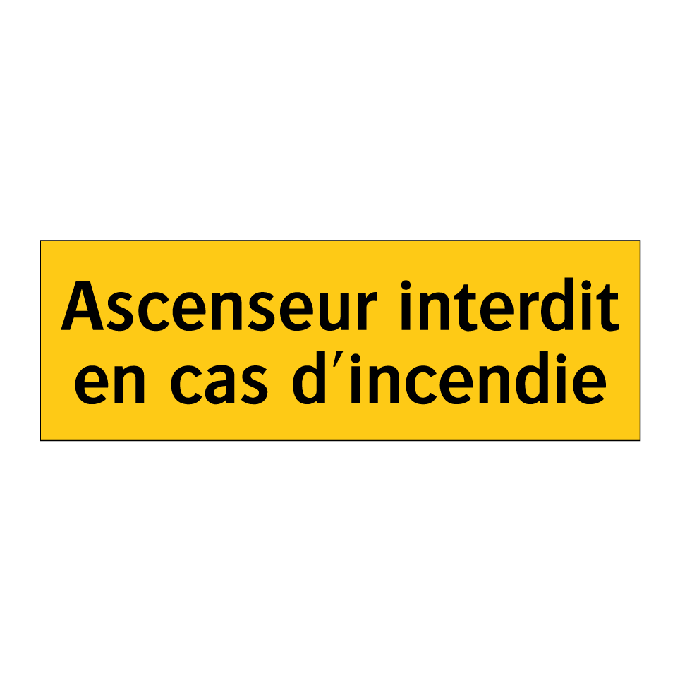 Panneau d'avertissement avec le texte : "Ascenseur interdit en cas d'incendie"