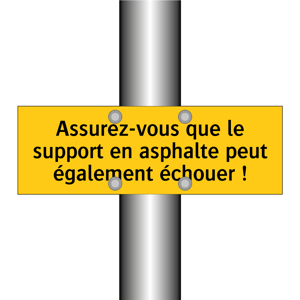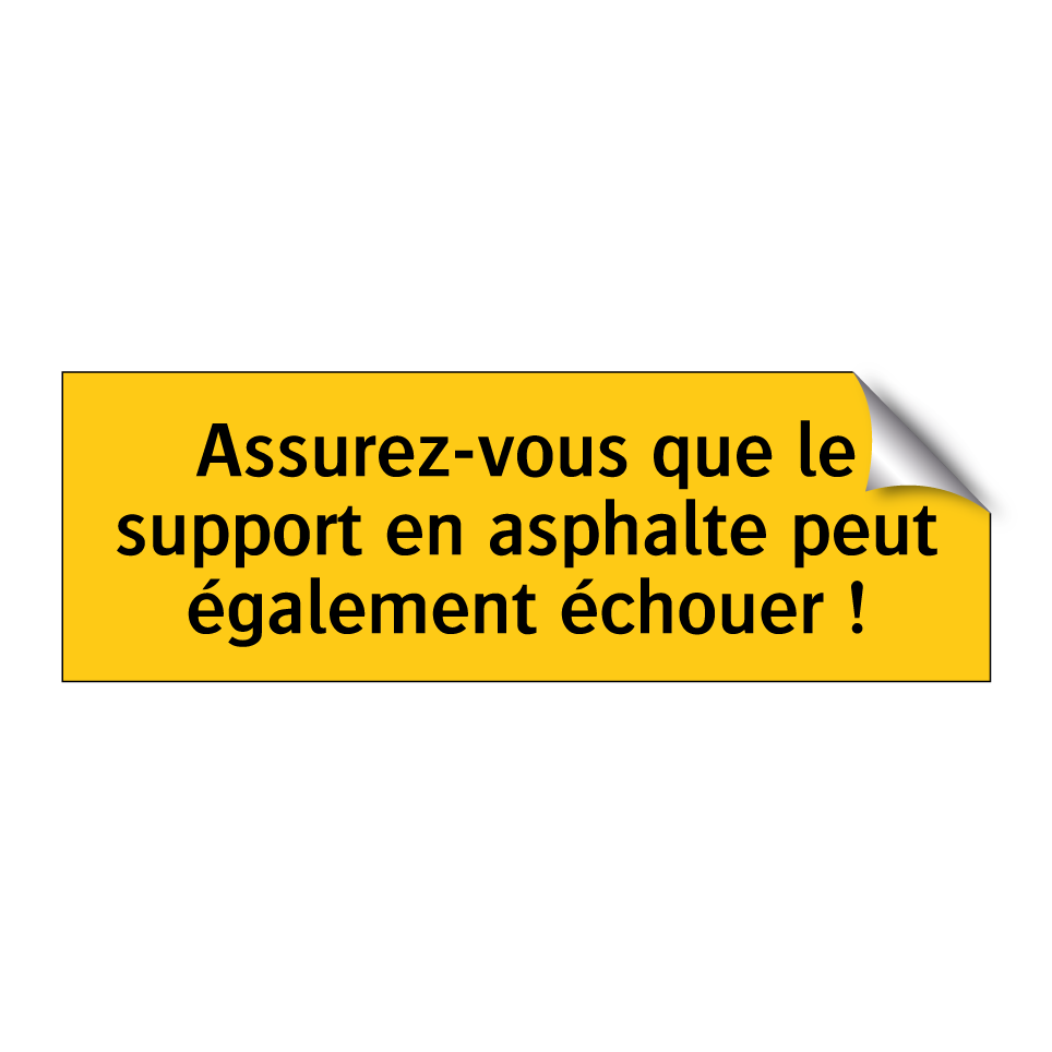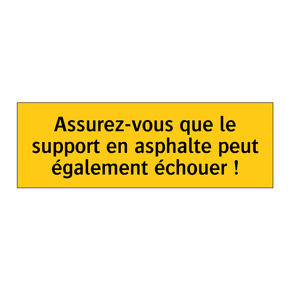 Panneau d'avertissement avec le texte : "Assurez-vous que le support en asphalte peut également échouer !"