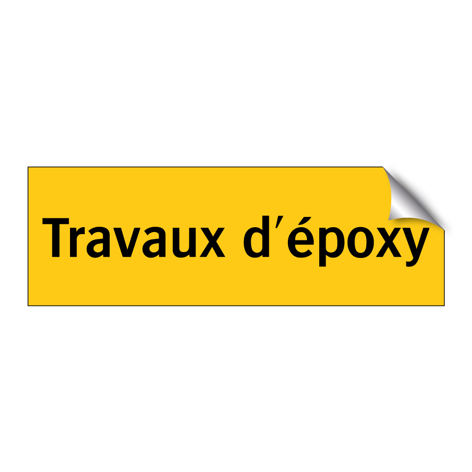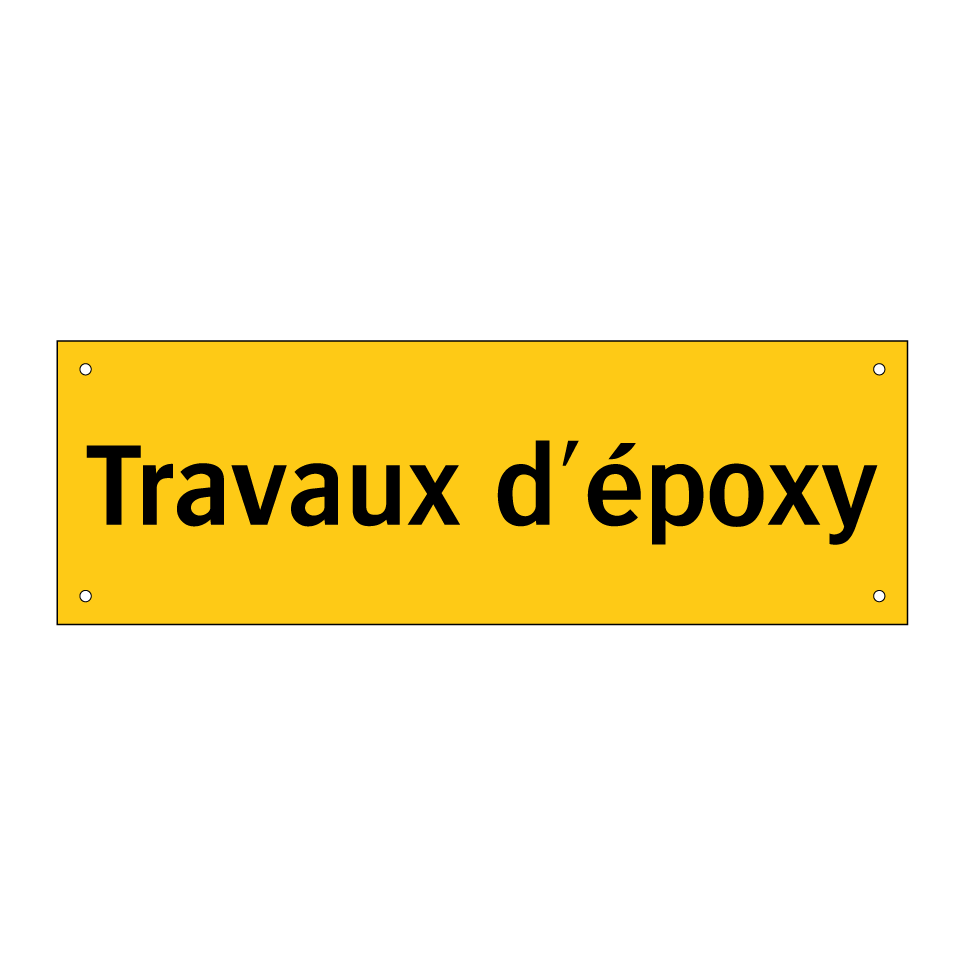 Panneau d'avertissement avec le texte : "Travaux d'époxy"