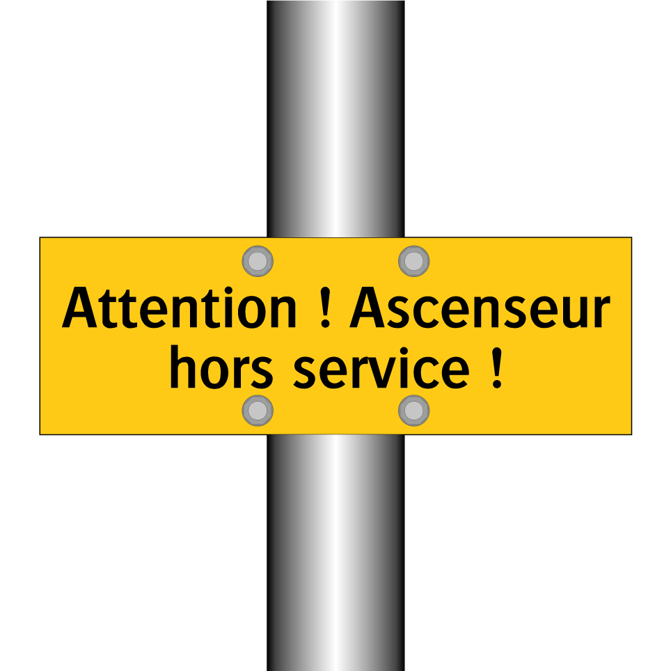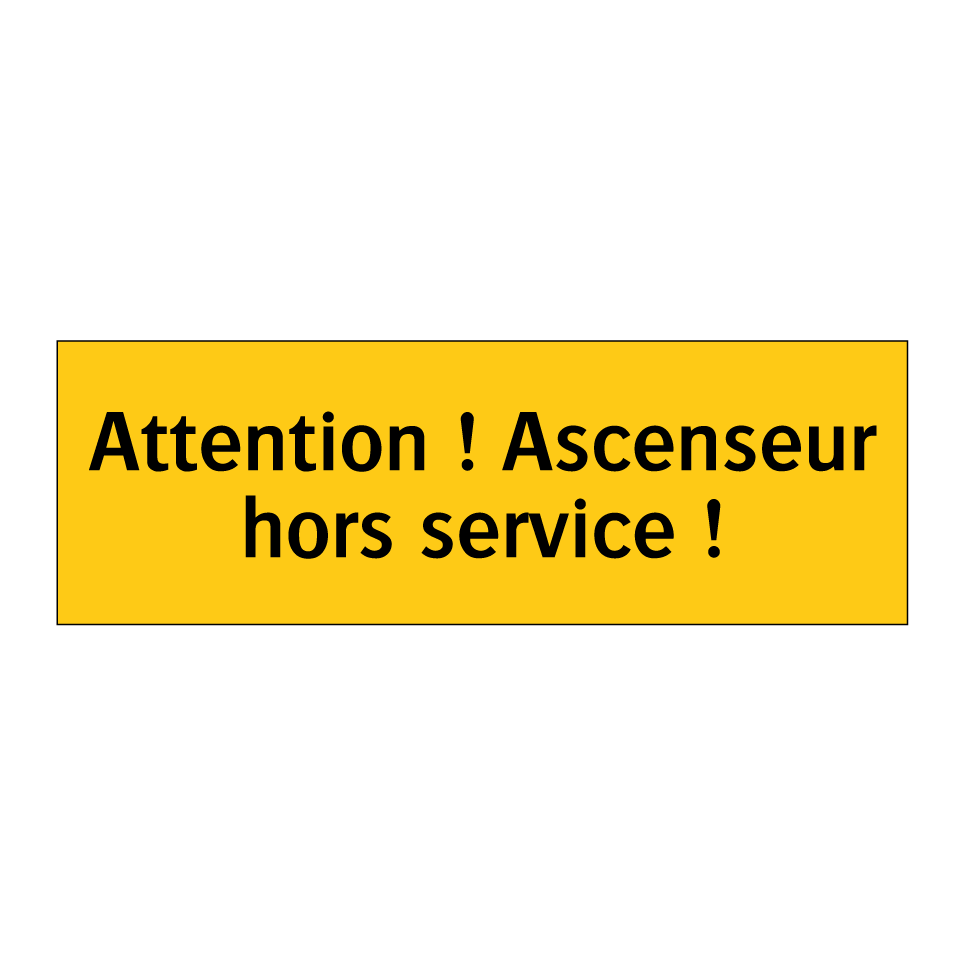 Panneau d'avertissement avec le texte : "Attention ! Ascenseur hors service !"