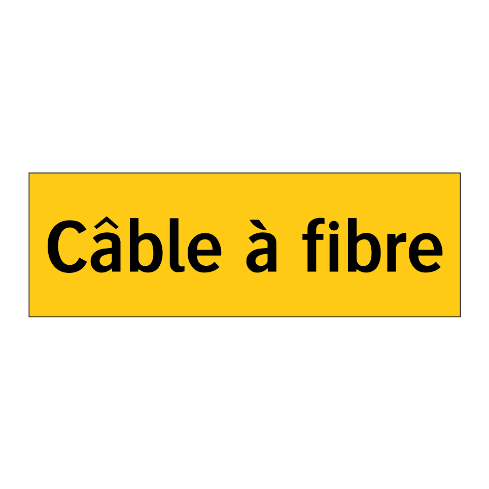 Panneau d'avertissement avec le texte : "Câble à fibre"