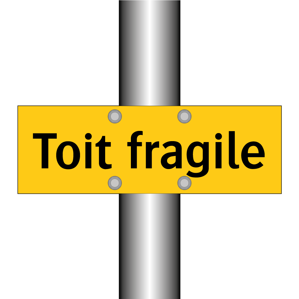 Panneau d'avertissement avec le texte : "Toit fragile"