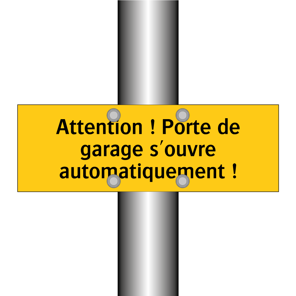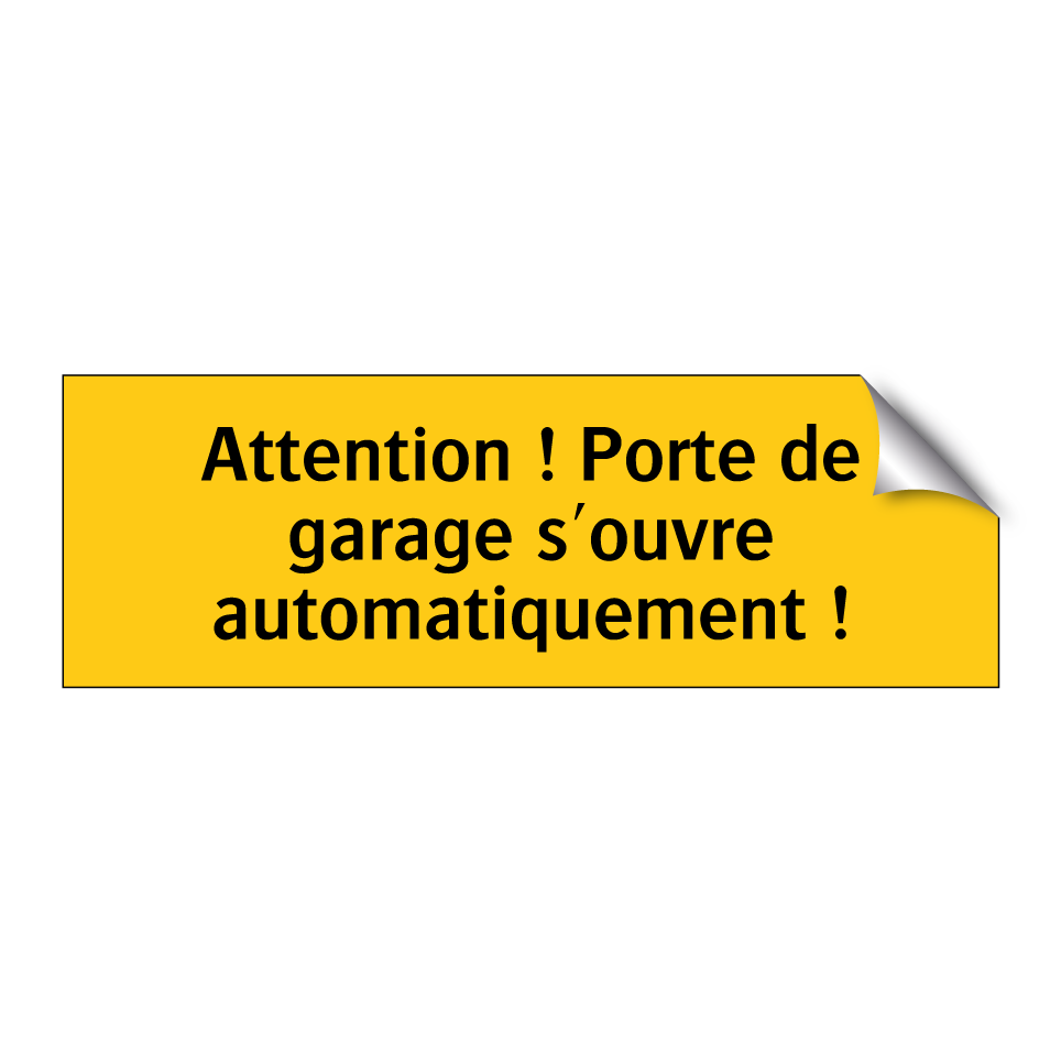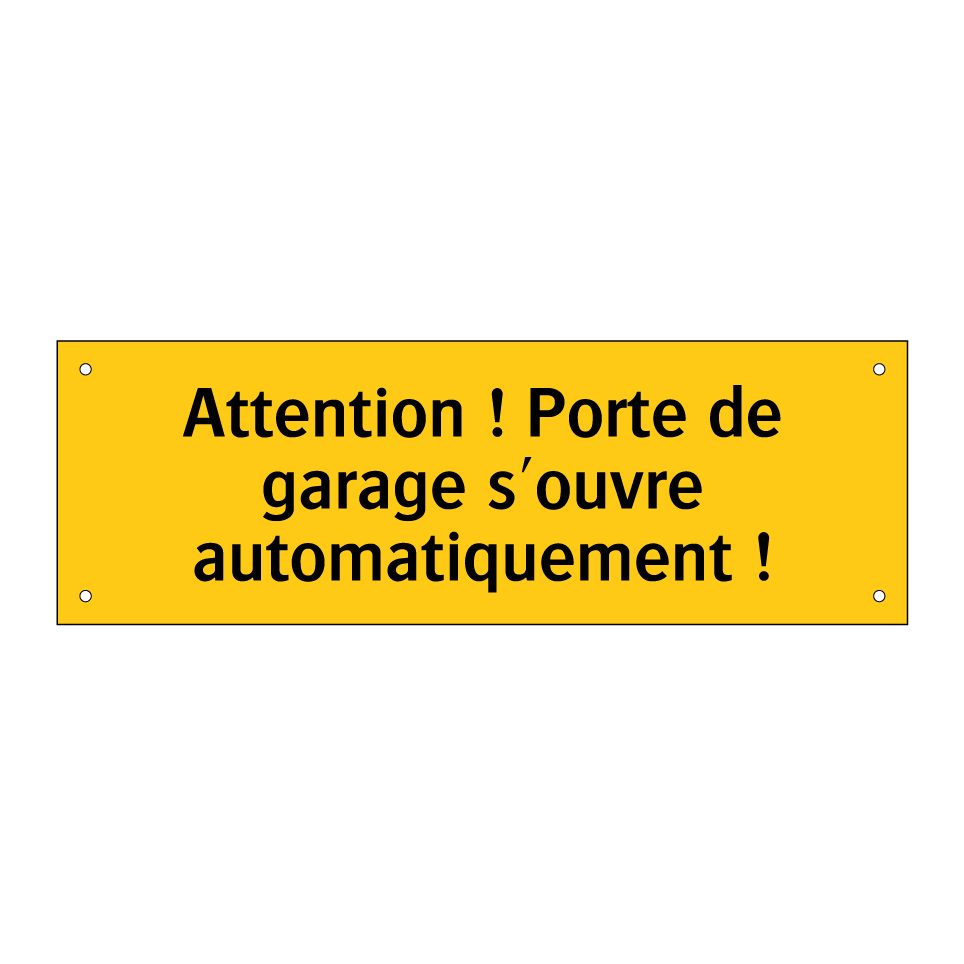 Panneau d'avertissement avec le texte : "Attention ! Porte de garage s'ouvre automatiquement !"