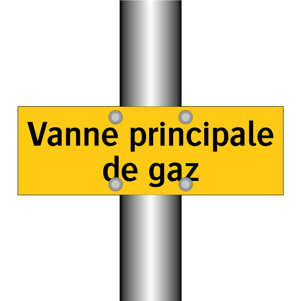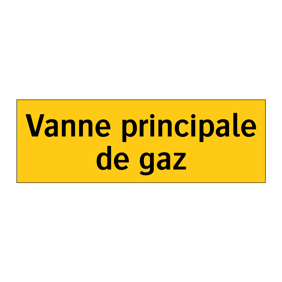 Panneau d'avertissement avec le texte : "Vanne principale de gaz"