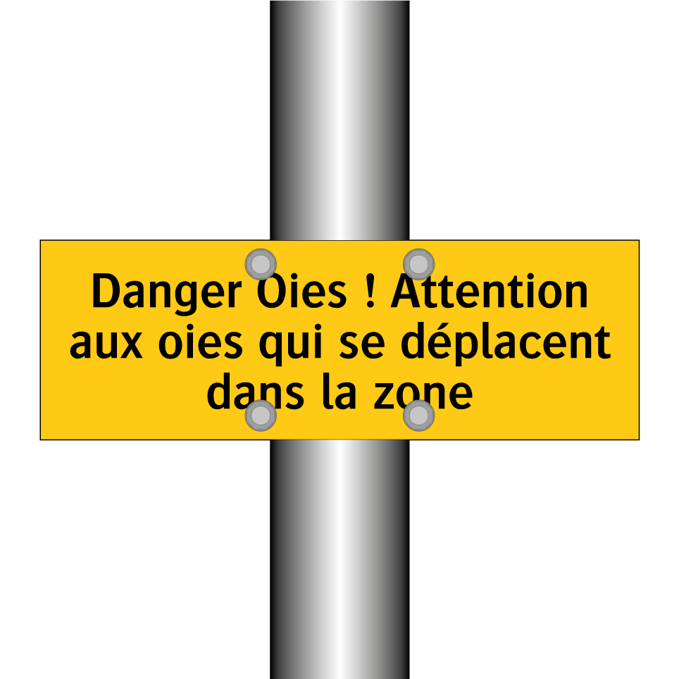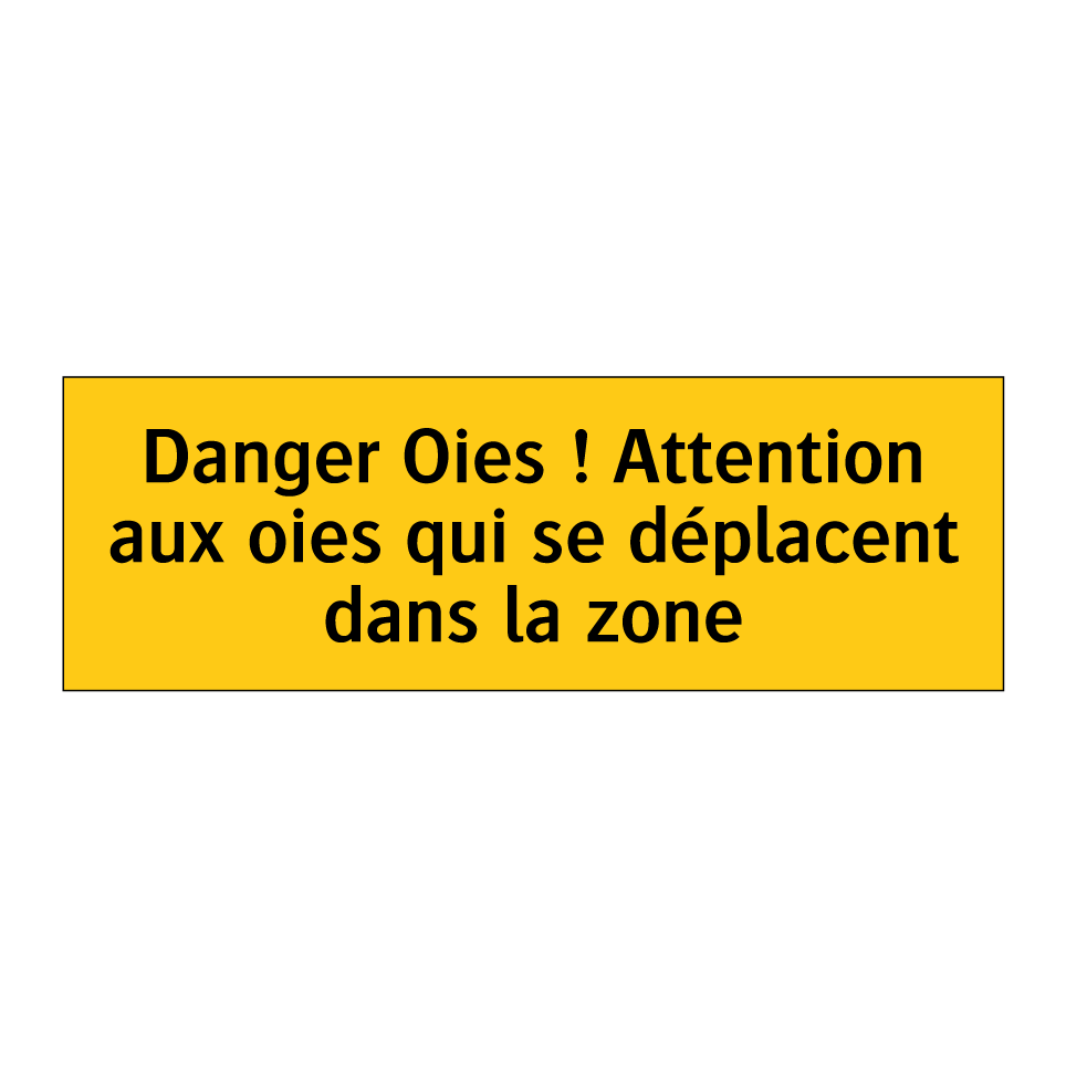 Panneau d'avertissement avec le texte : "Danger Oies ! Attention aux oies qui se déplacent dans la zone"