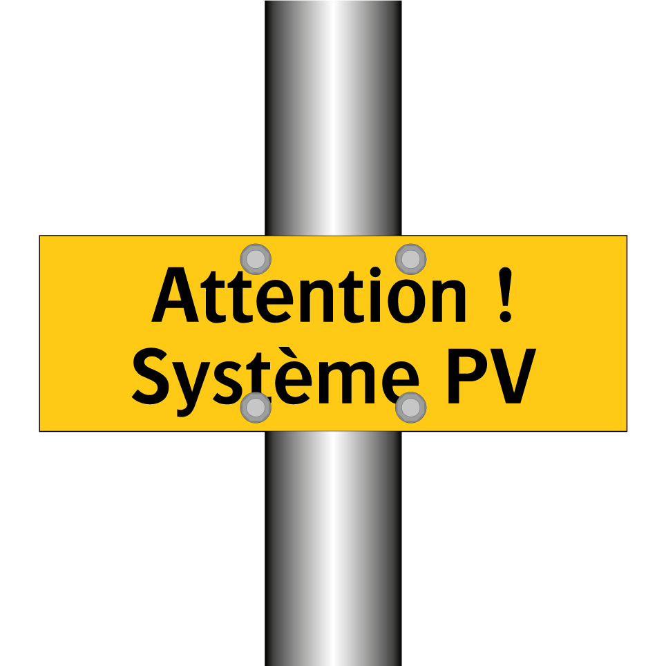 Panneau d'avertissement avec le texte : "Attention ! Système PV"