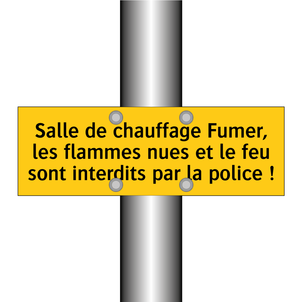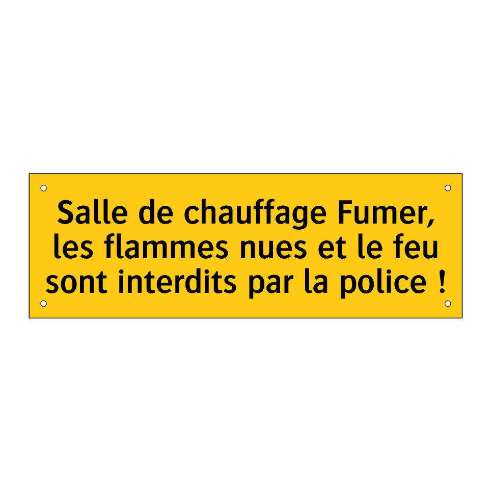 Panneau d'avertissement avec le texte : "Salle de chauffage Fumer, les flammes nues et le feu sont interdits par la police !"