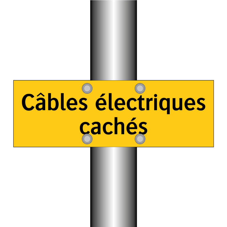 Panneau d'avertissement avec le texte : "Câbles électriques cachés"
