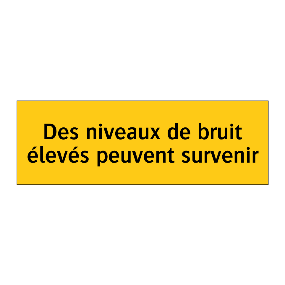 Panneau d'avertissement avec le texte : "Des niveaux de bruit élevés peuvent survenir"