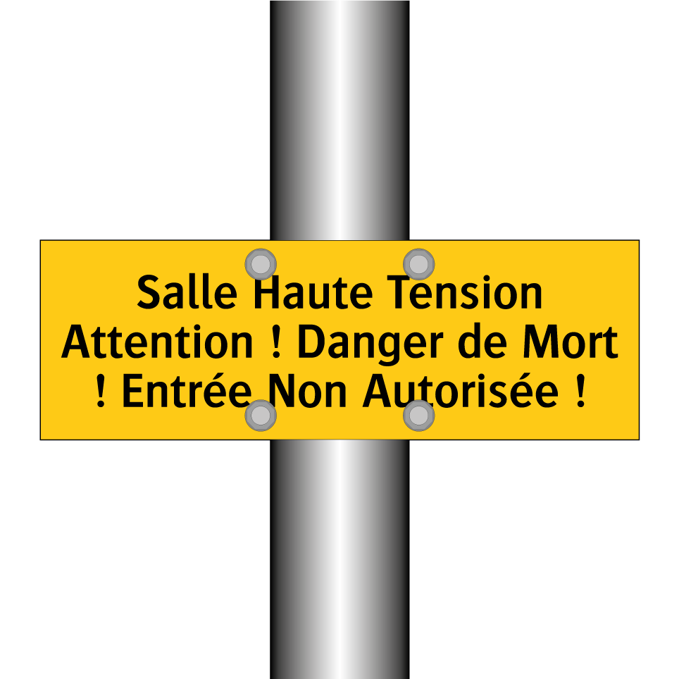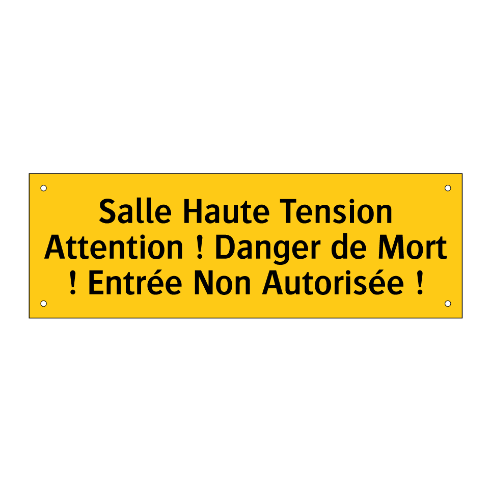 Panneau d'avertissement avec le texte : "Salle Haute Tension Attention ! Danger de Mort ! Entrée Non Autorisée !"