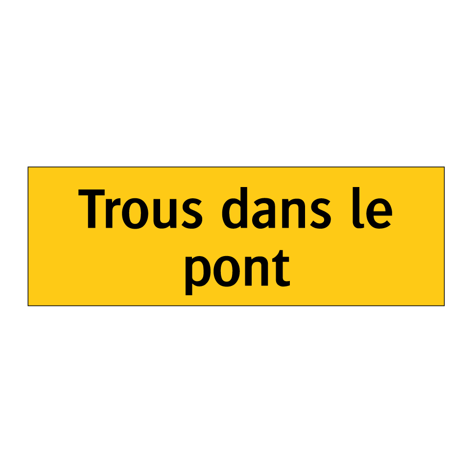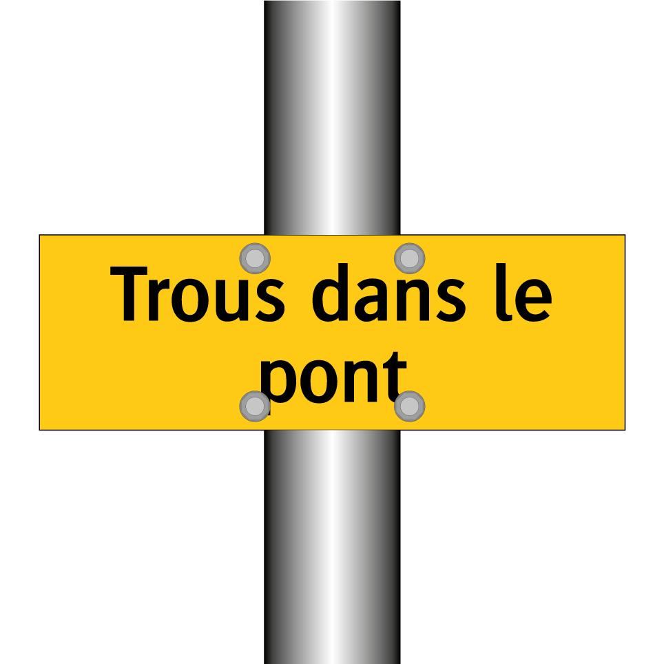 Panneau d'avertissement avec le texte : "Trous dans le pont"