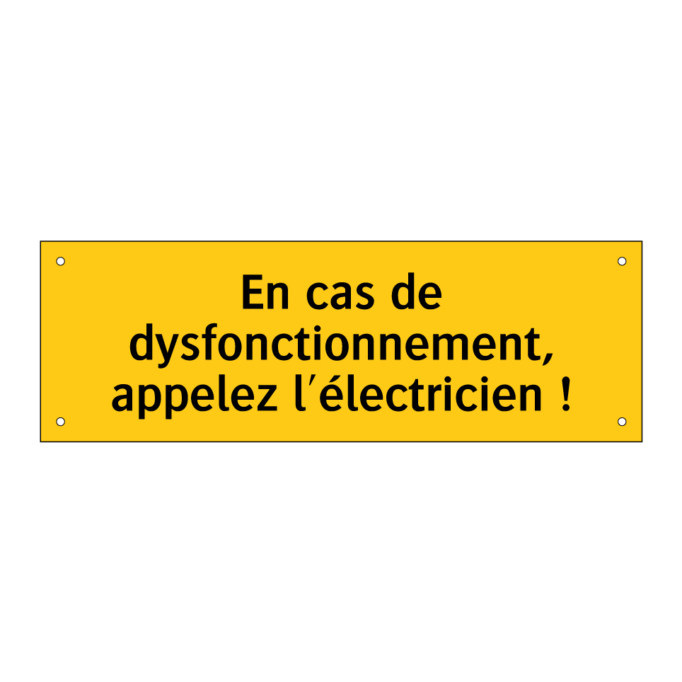 Panneau d'avertissement avec le texte : "En cas de dysfonctionnement, appelez l'électricien !"