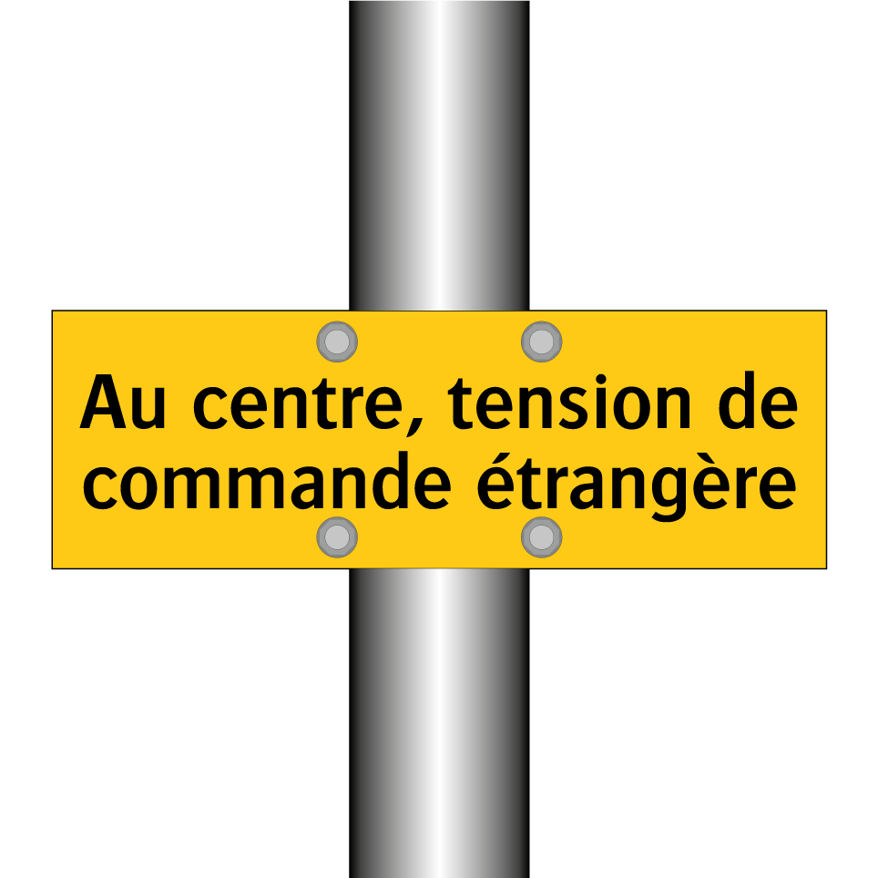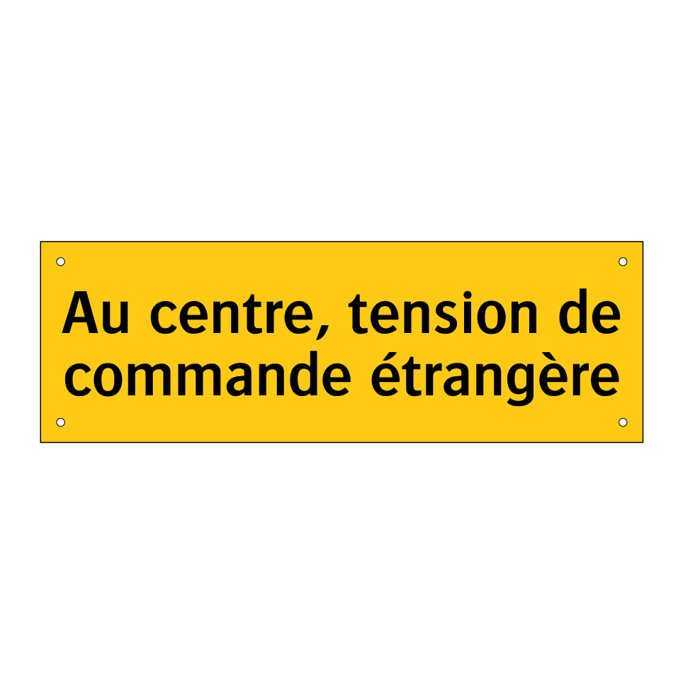 Panneau d'avertissement avec le texte : "Au centre, tension de commande étrangère"
