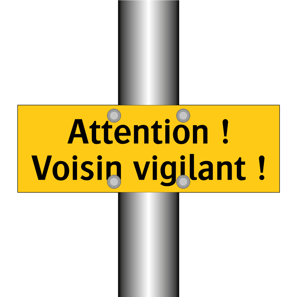 Panneau d'avertissement avec le texte : "Attention ! Voisin vigilant !"