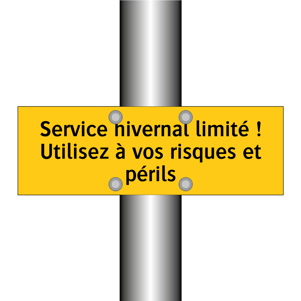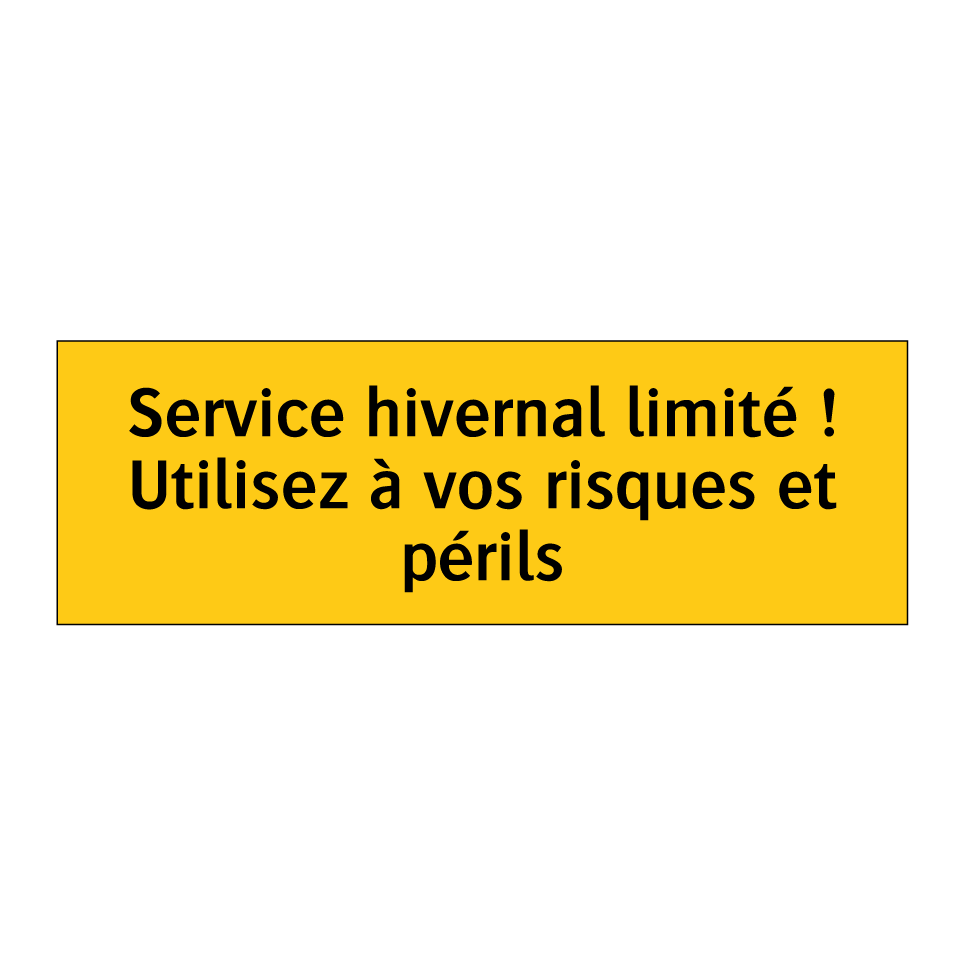 Panneau d'avertissement avec le texte : "Service hivernal limité ! Utilisez à vos risques et périls"