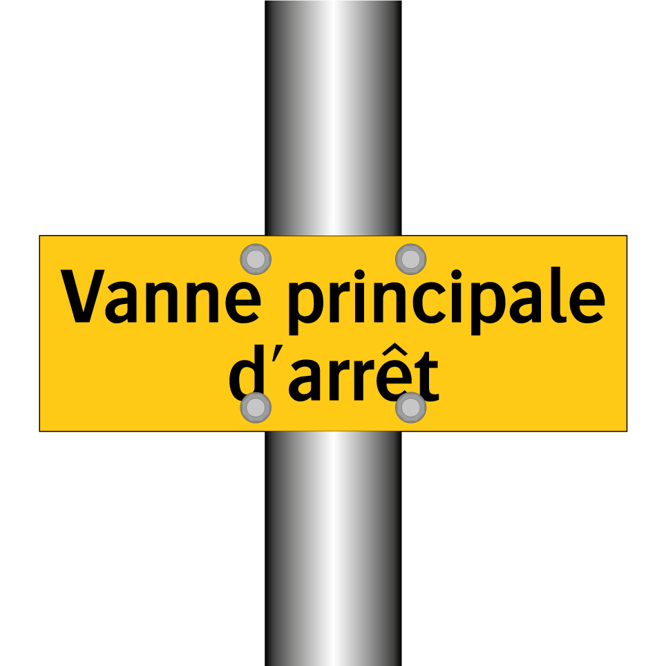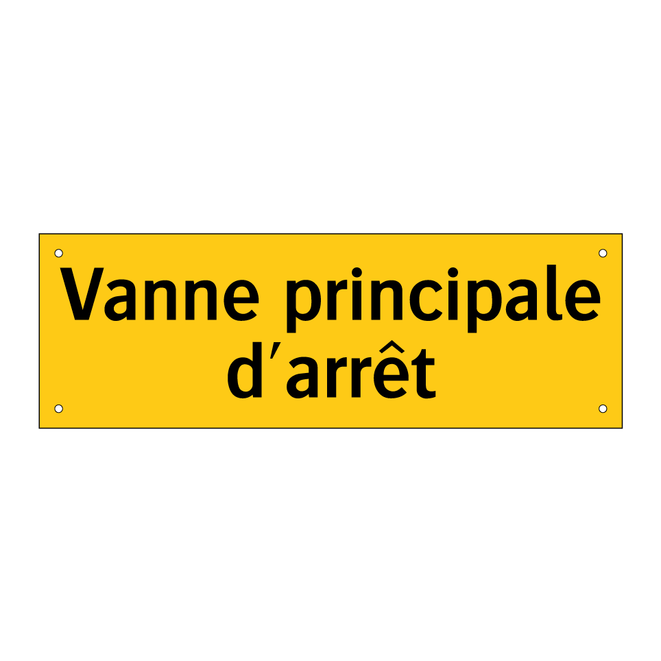 Panneau d'avertissement avec le texte : "Vanne principale d'arrêt"
