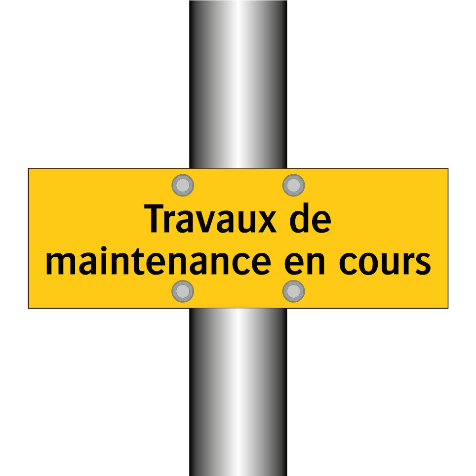 Panneau d'avertissement avec le texte : "Travaux de maintenance en cours"