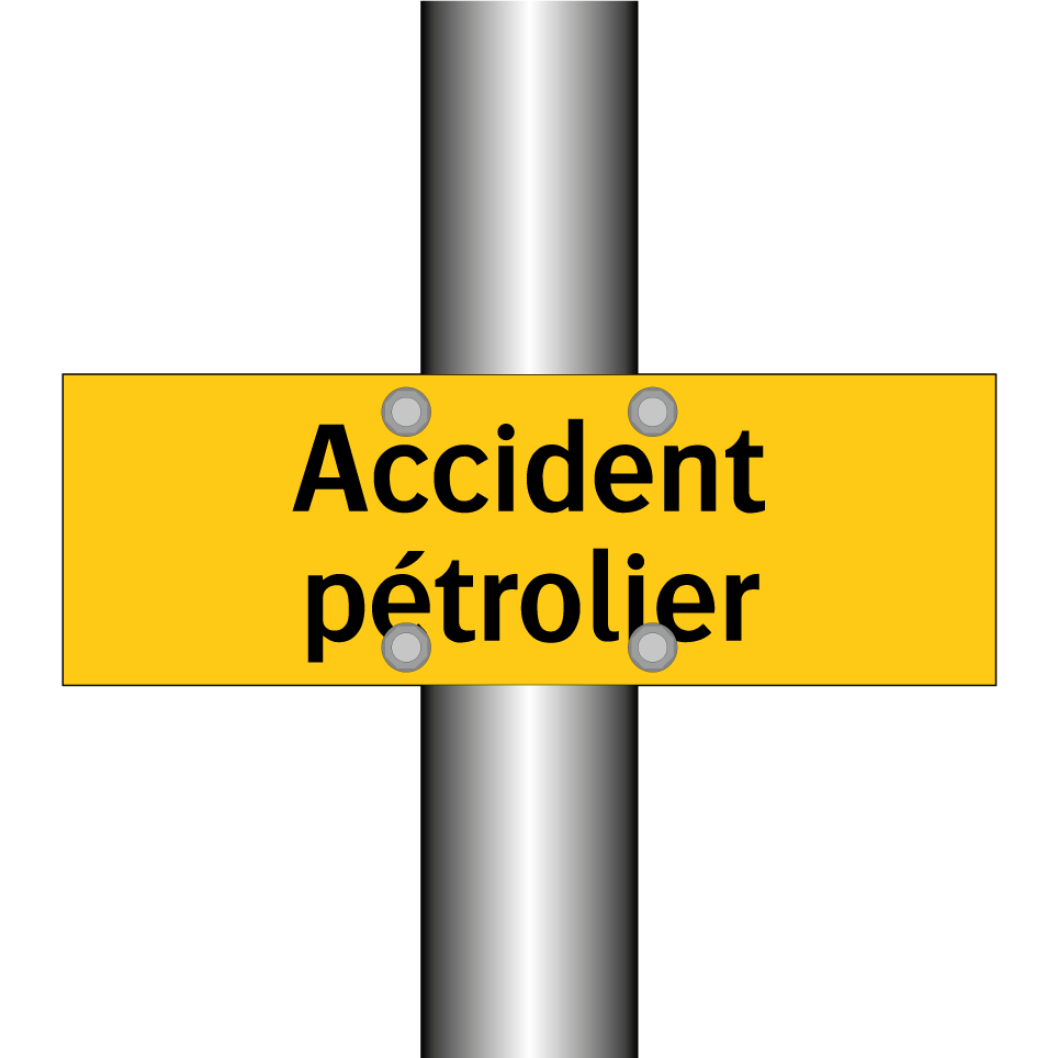 Panneau d'avertissement avec le texte : "Accident pétrolier"
