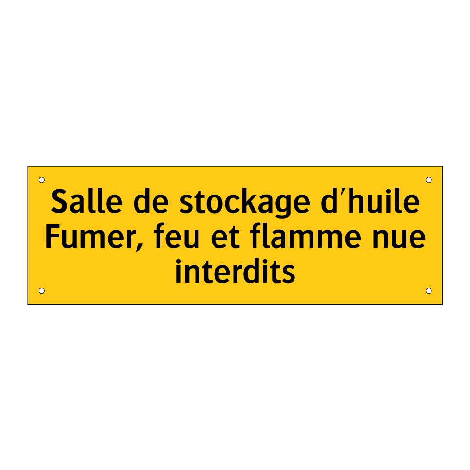 Panneau d'avertissement avec le texte : "Salle de stockage d'huile Fumer, feu et flamme nue interdits"