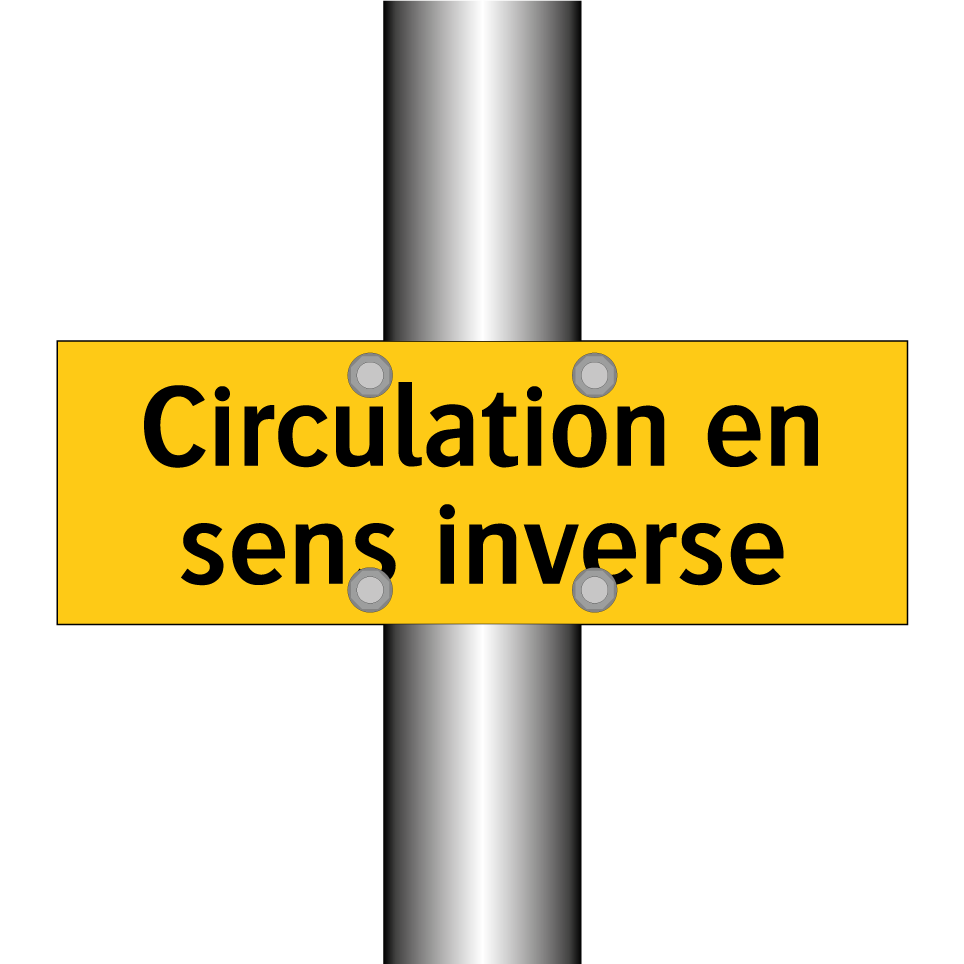 Panneau d'avertissement avec le texte : "Circulation en sens inverse"