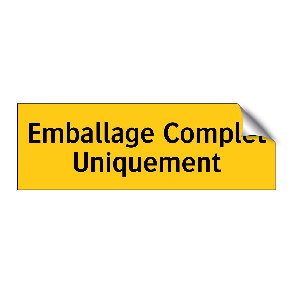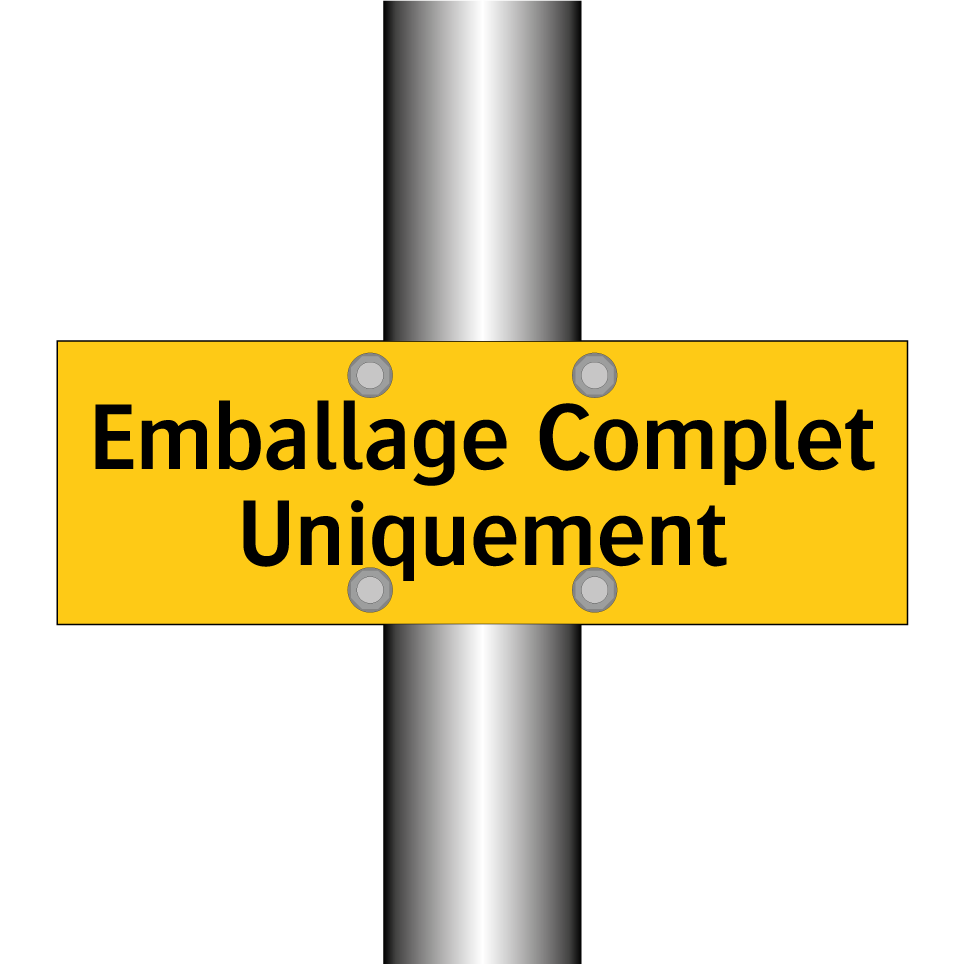 Panneau d'avertissement avec le texte : "Emballage Complet Uniquement"