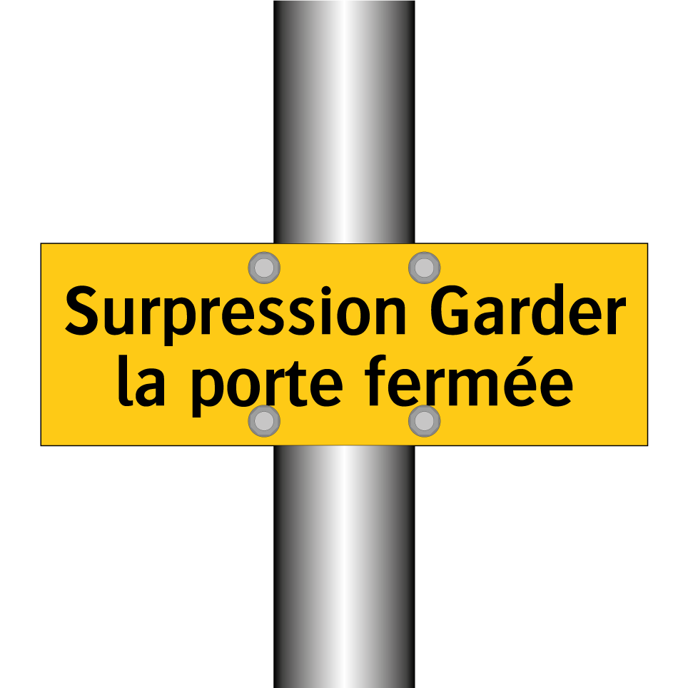 Panneau d'avertissement avec le texte : "Surpression Garder la porte fermée"