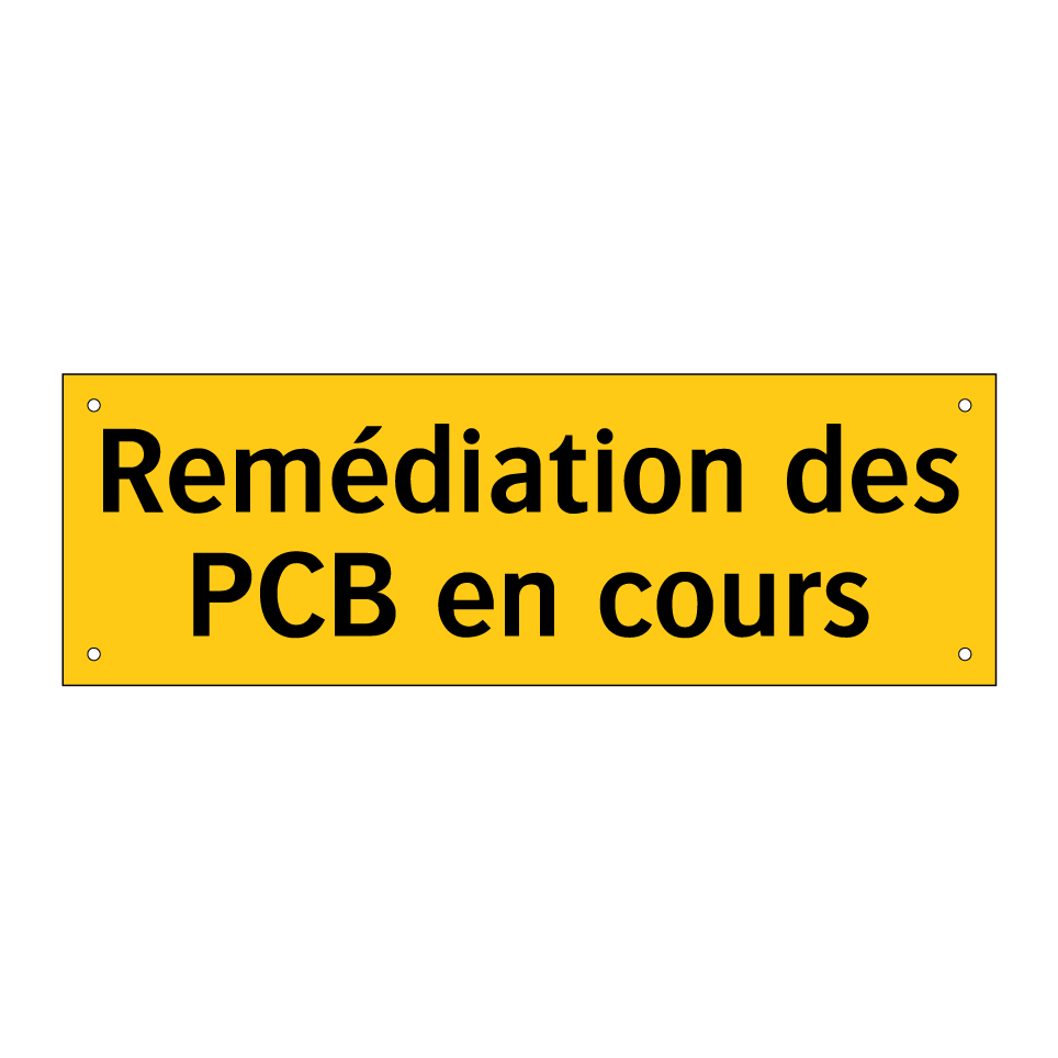 Panneau d'avertissement avec le texte : "Remédiation des PCB en cours"