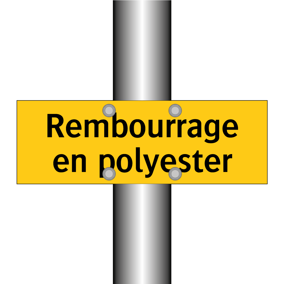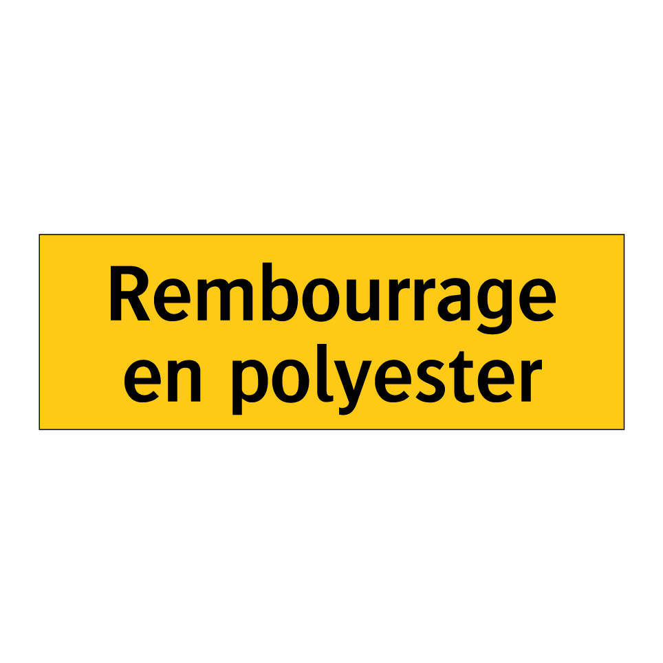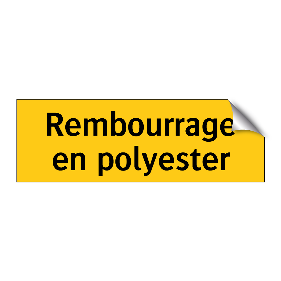 Panneau d'avertissement avec le texte : "Rembourrage en polyester"