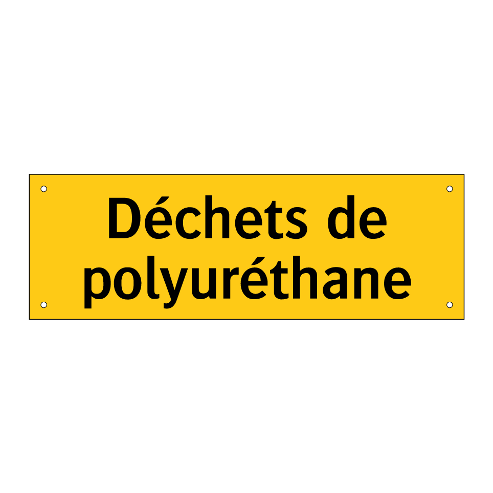 Panneau d'avertissement avec le texte : "Déchets de polyuréthane"