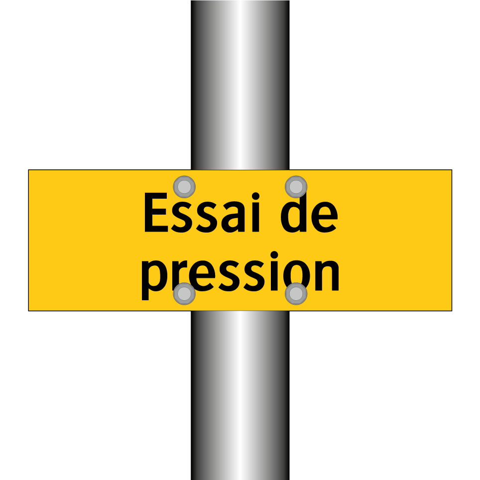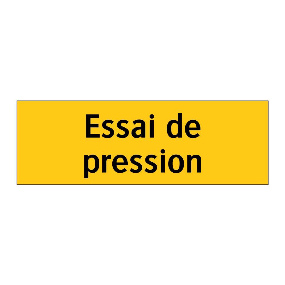 Panneau d'avertissement avec le texte : "Essai de pression"