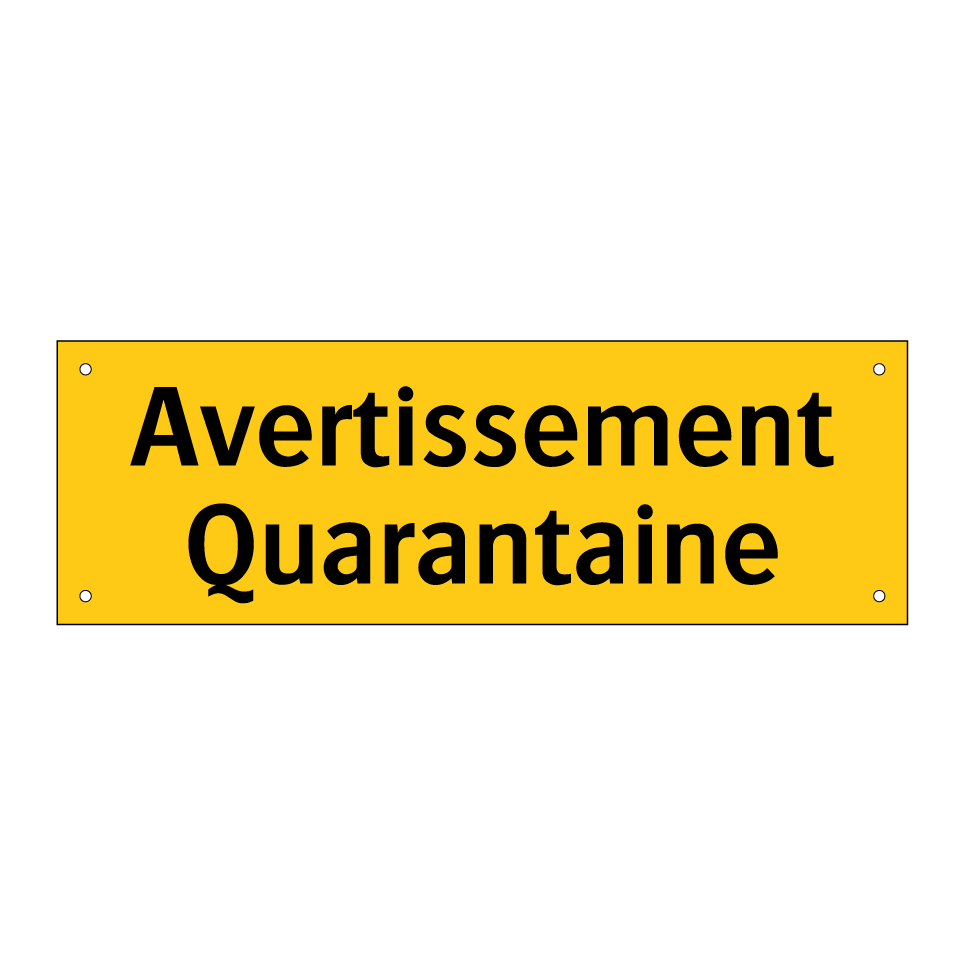 Panneau d'avertissement avec le texte : "Avertissement Quarantaine"