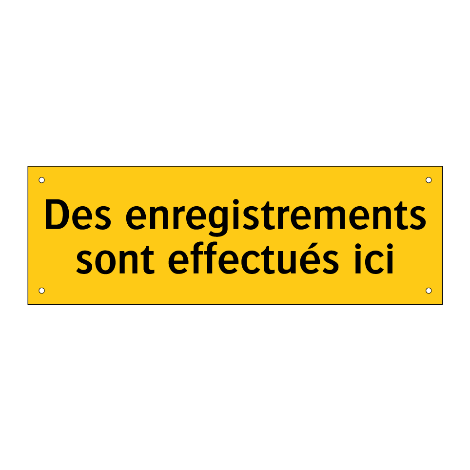 Panneau d'avertissement avec le texte : "Des enregistrements sont effectués ici"
