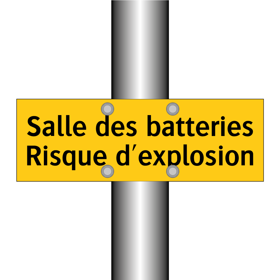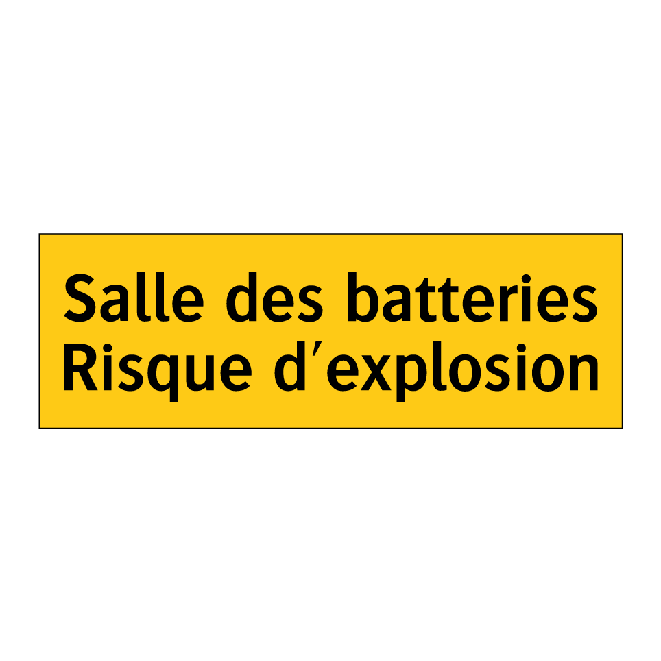 Panneau d'avertissement avec le texte : "Salle des batteries Risque d'explosion"