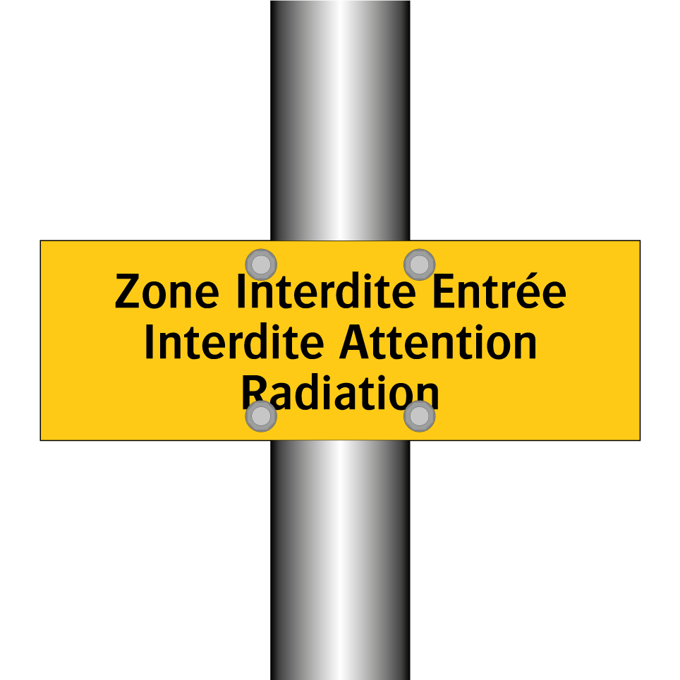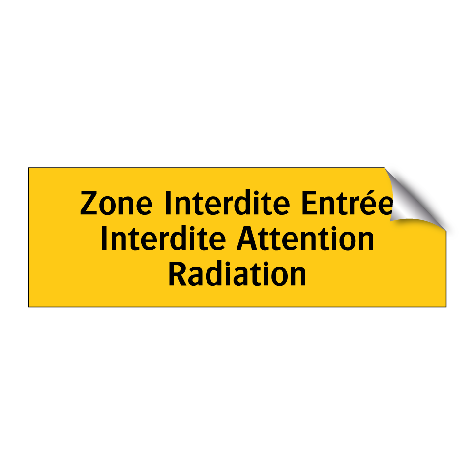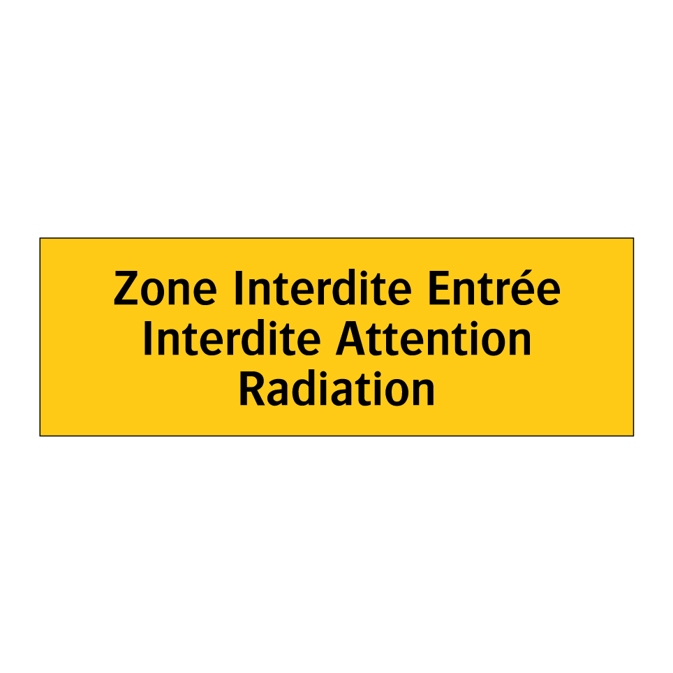 Panneau d'avertissement avec le texte : "Zone Interdite Entrée Interdite Attention Radiation"