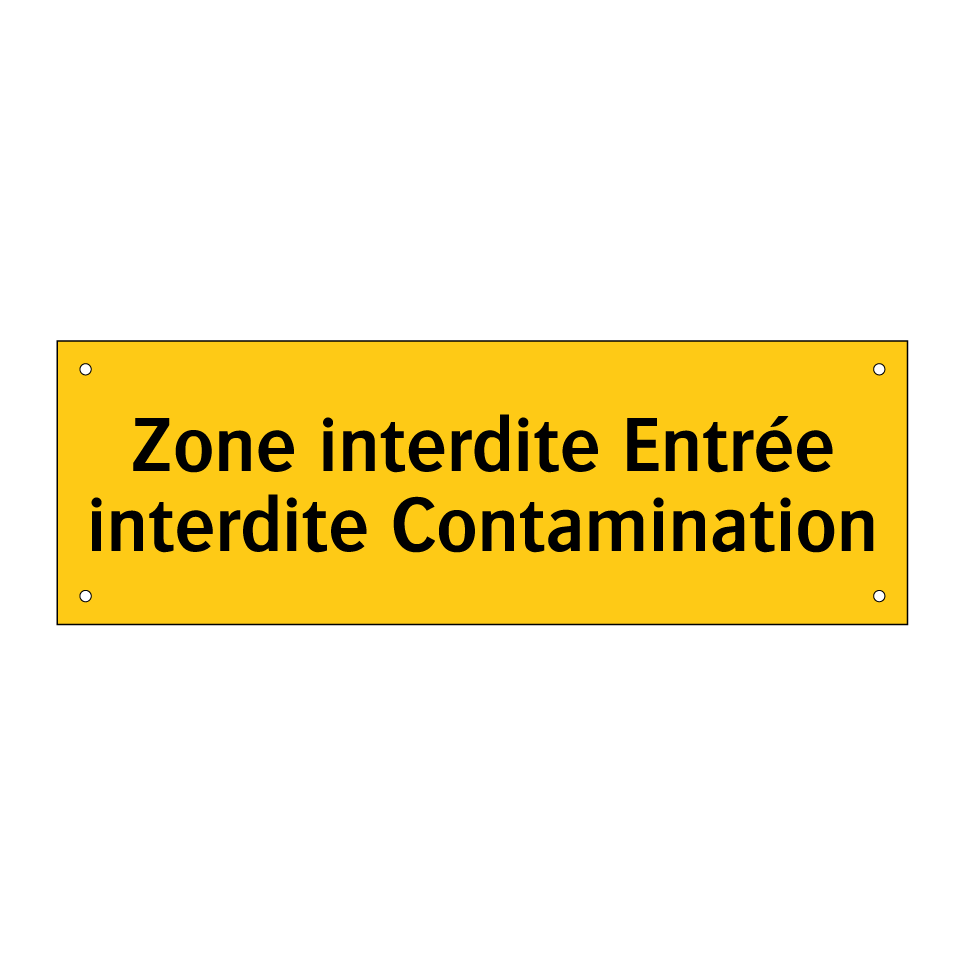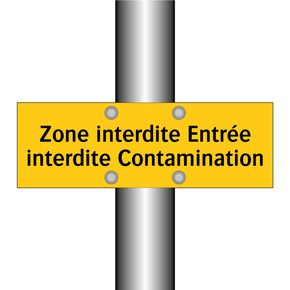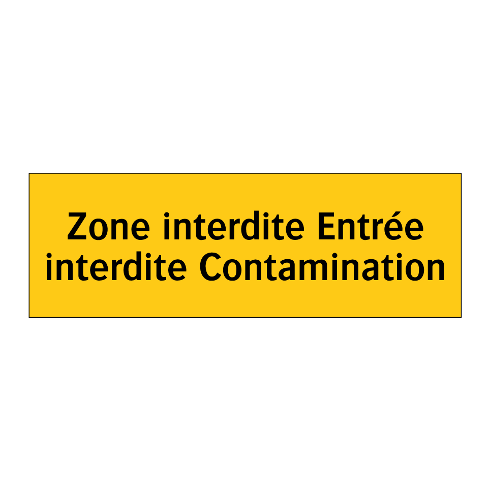 Panneau d'avertissement avec le texte : "Zone interdite Entrée interdite Contamination"