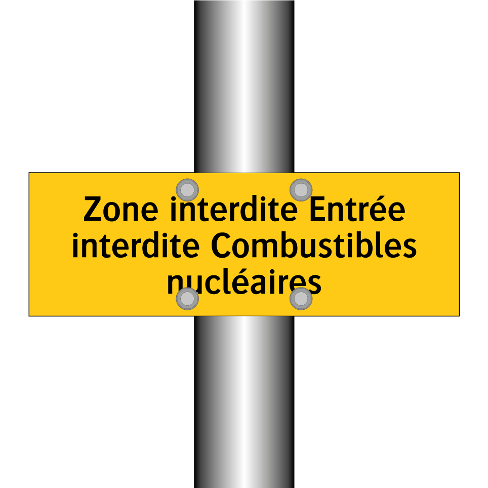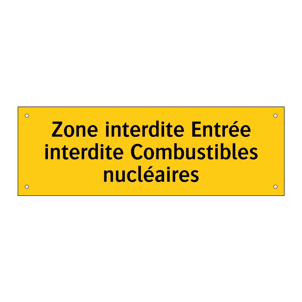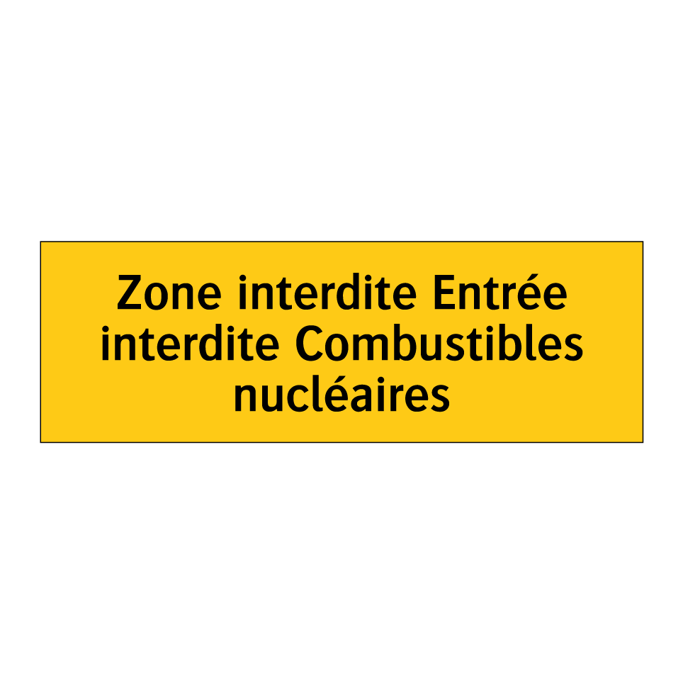 Panneau d'avertissement avec le texte : "Zone interdite Entrée interdite Combustibles nucléaires"