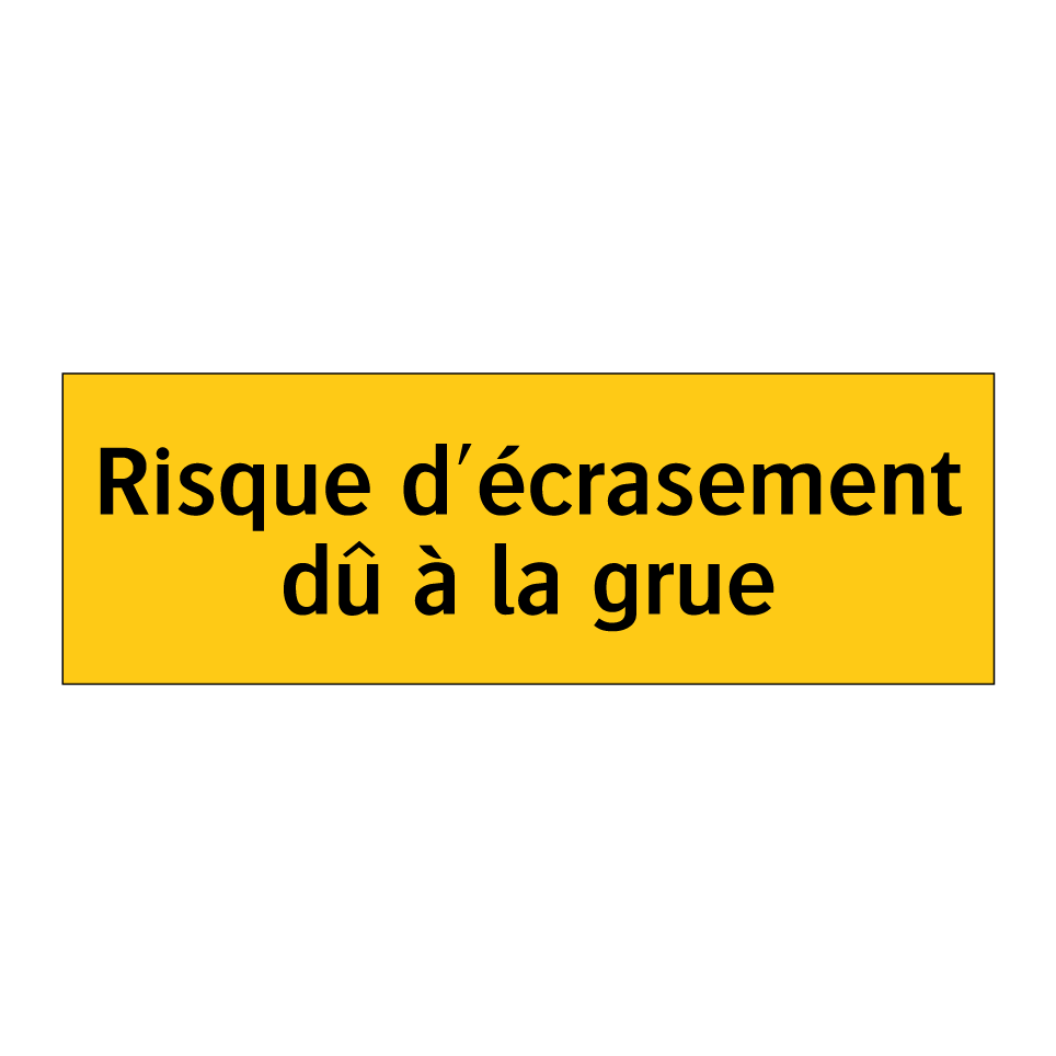 Panneau d'avertissement avec le texte : "Risque d'écrasement dû à la grue"