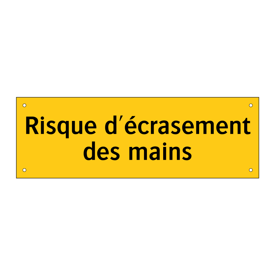 Panneau d'avertissement avec le texte : "Risque d'écrasement des mains"