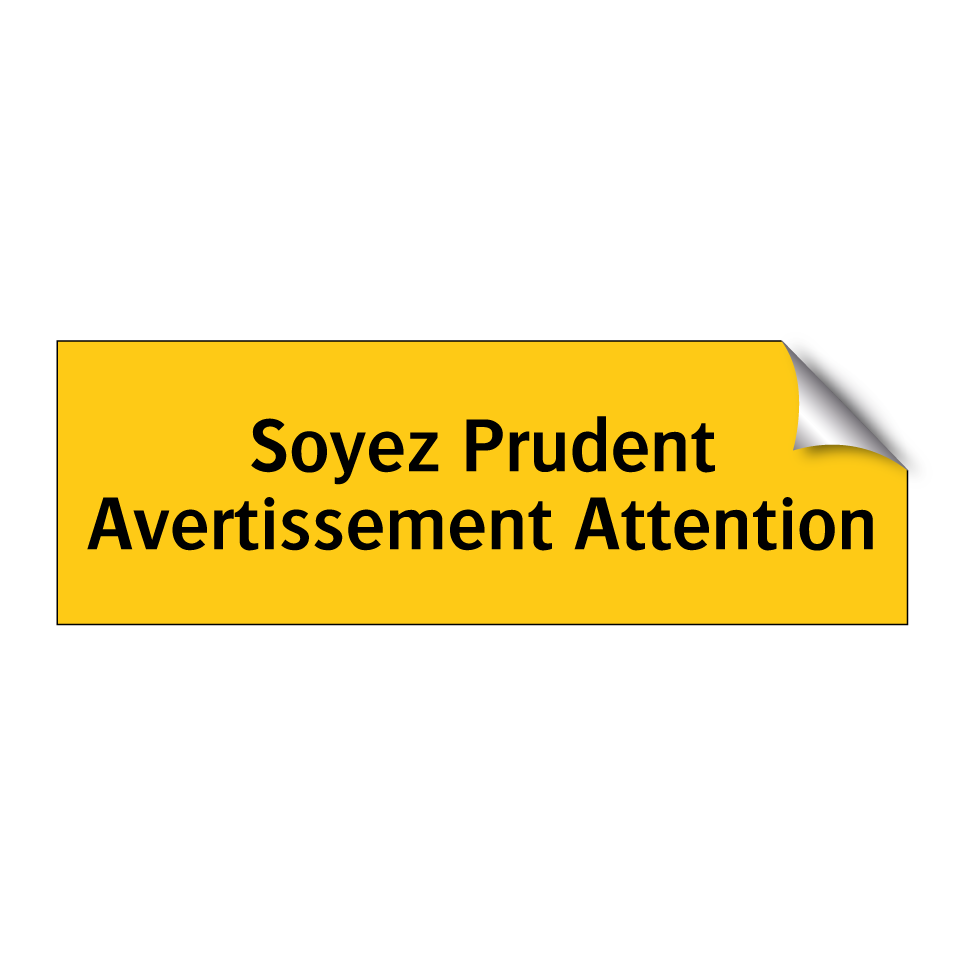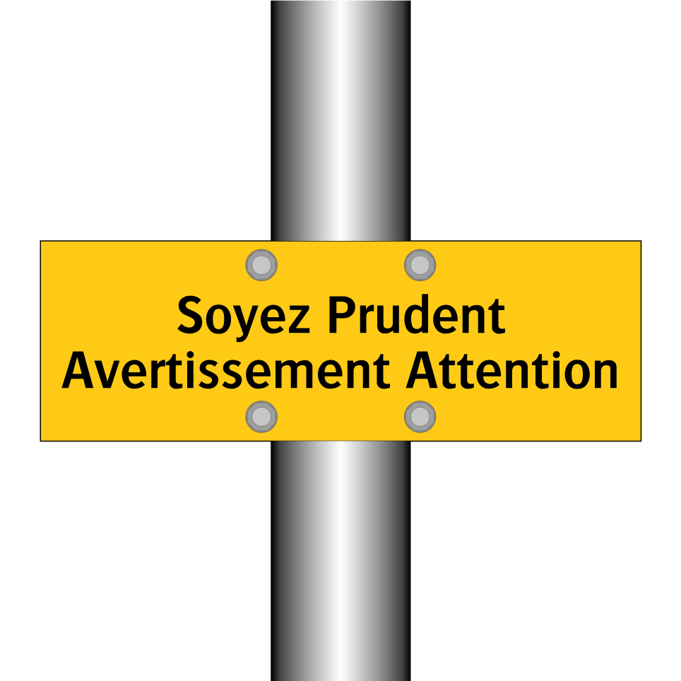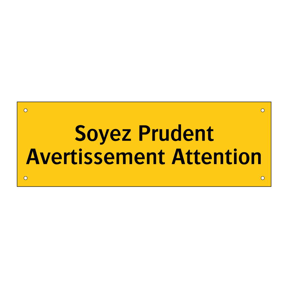 Panneau d'avertissement avec le texte : "Soyez Prudent Avertissement Attention"