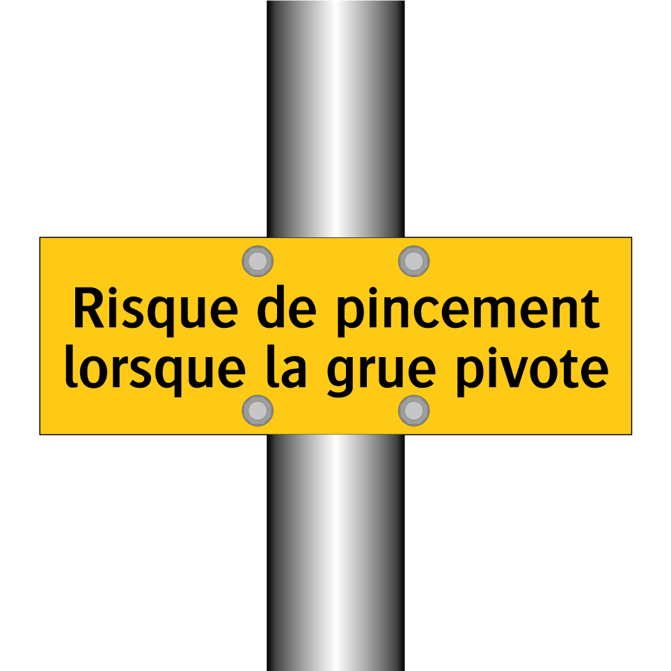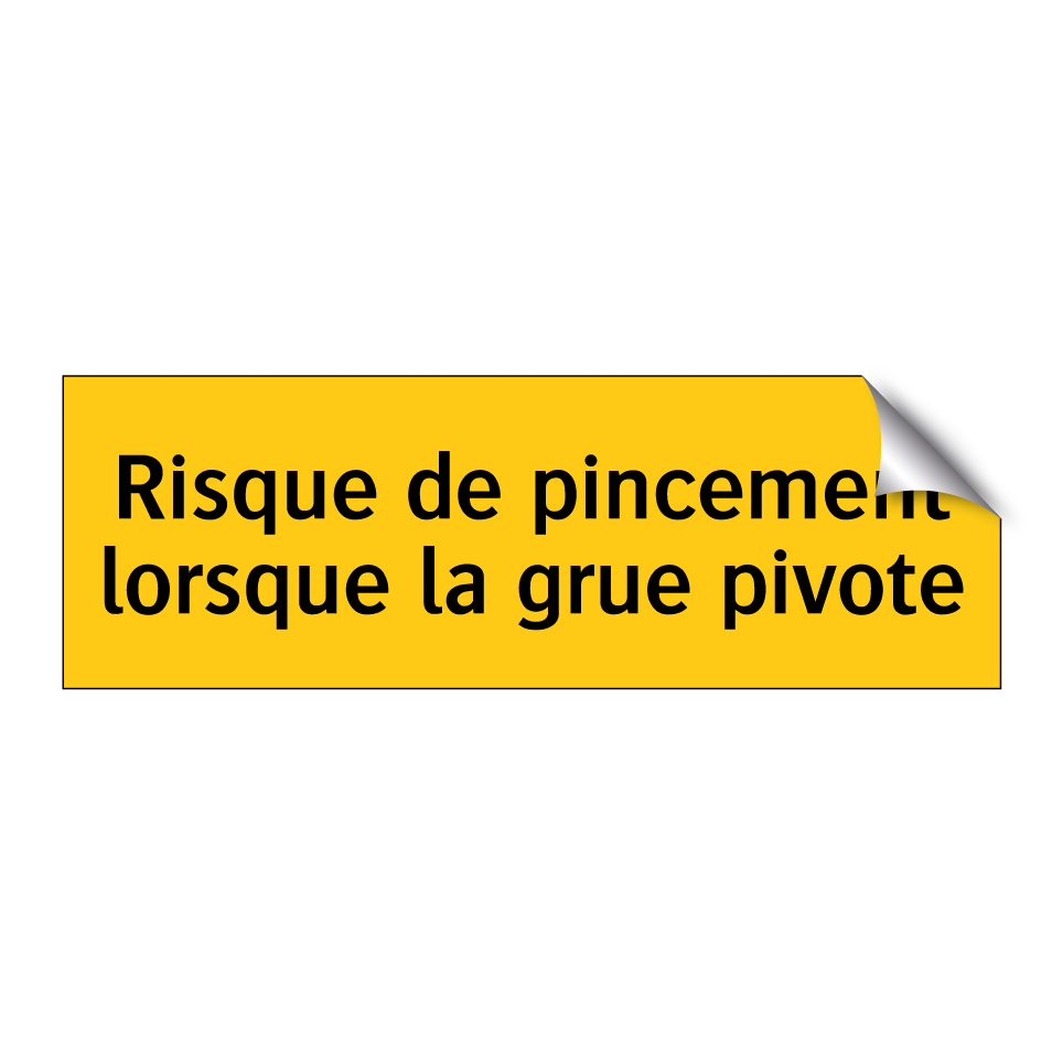Panneau d'avertissement avec le texte : "Risque de pincement lorsque la grue pivote"