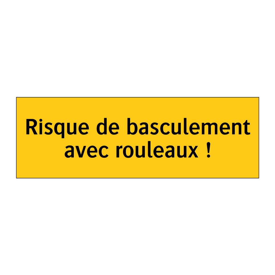 Panneau d'avertissement avec le texte : "Risque de basculement avec rouleaux !"