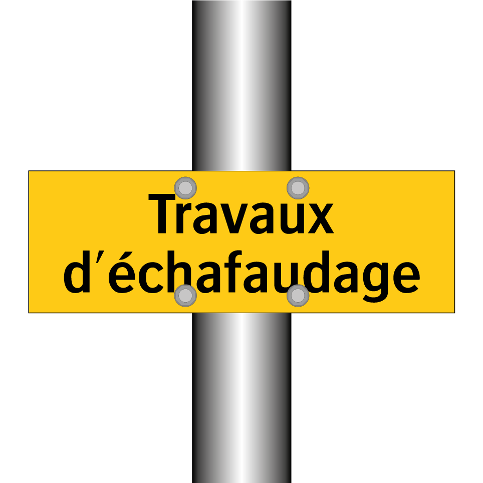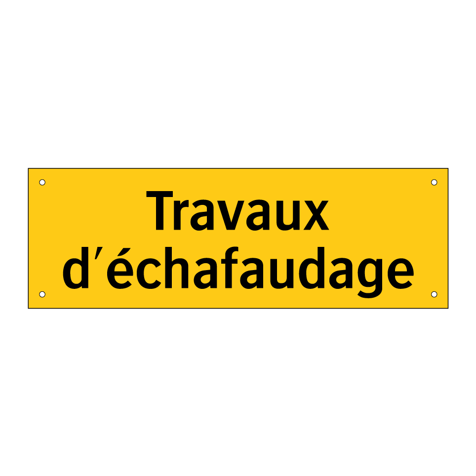 Panneau d'avertissement avec le texte : "Travaux d'échafaudage"