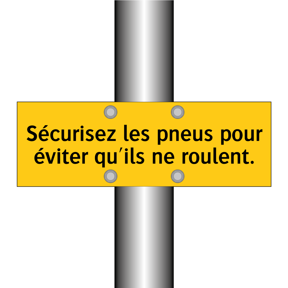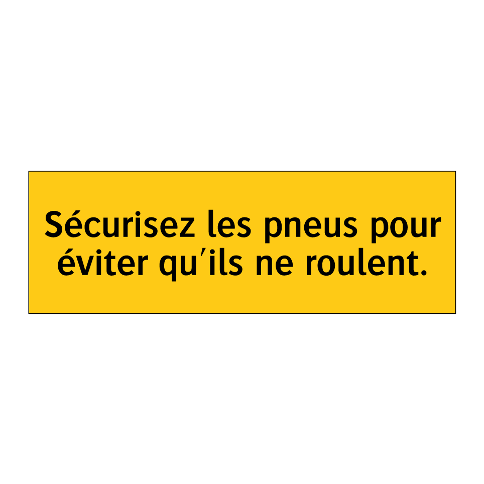 Panneau d'avertissement avec le texte : "Sécurisez les pneus pour éviter qu'ils ne roulent"