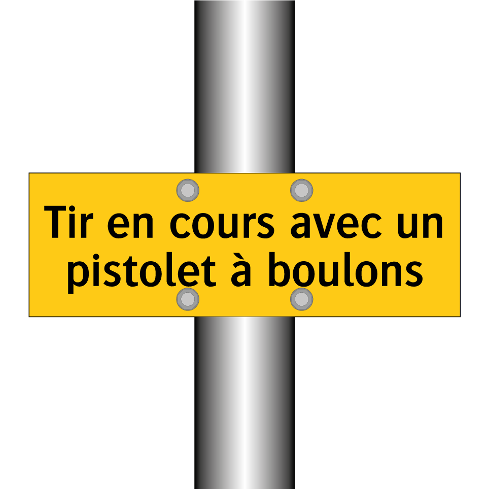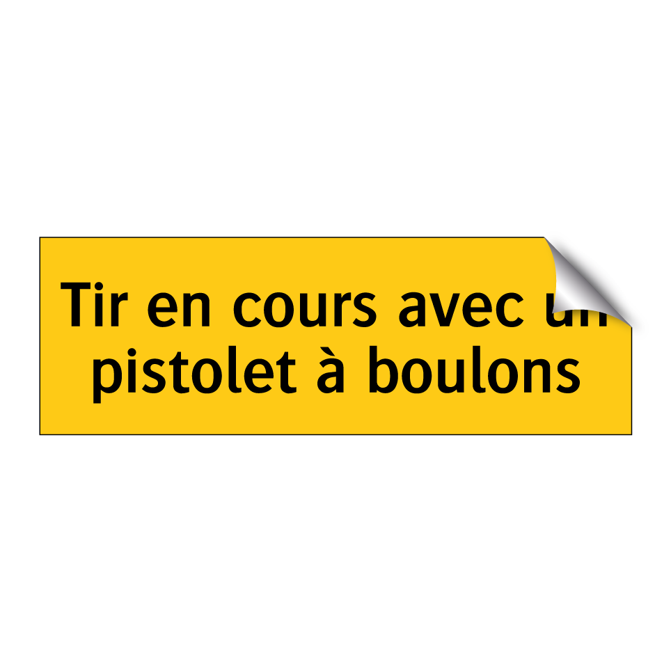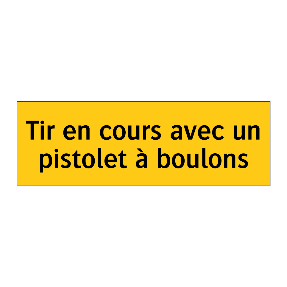 Panneau d'avertissement avec le texte : "Tir en cours avec un pistolet à boulons"