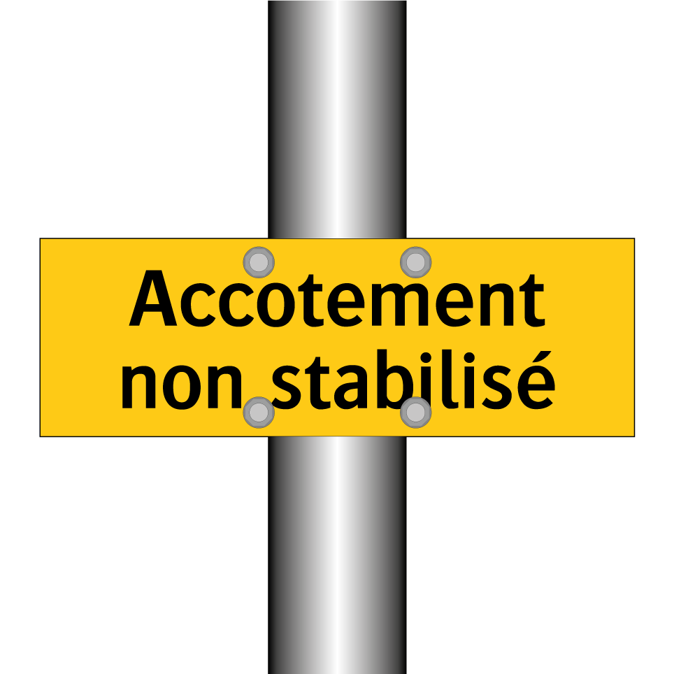Panneau d'avertissement avec le texte : "Accotement non stabilisé"