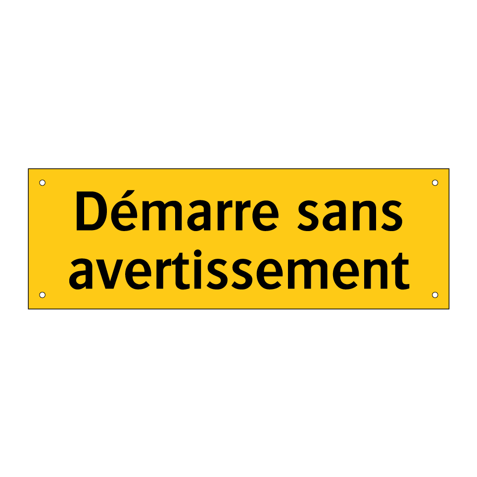 Panneau d'avertissement avec le texte : "Démarre sans avertissement"